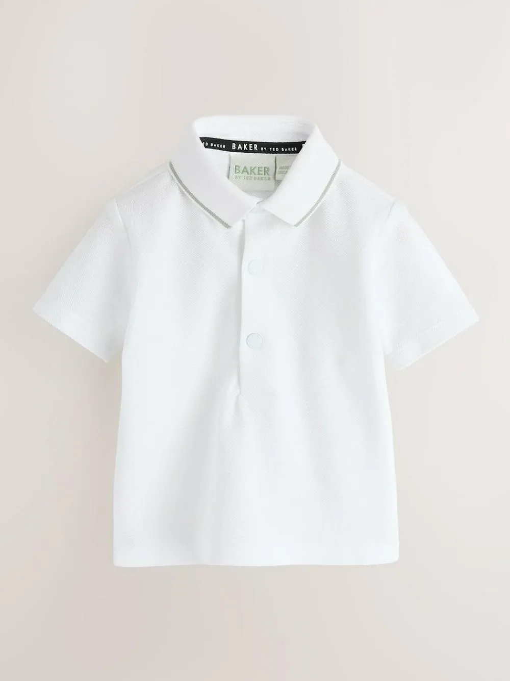 Achieve a timeless, high-quality look for your little one with the Baker by Ted Baker Dungarees and Polo Shirt Set, a perfectly coordinated two-piece ensemble. The set features cute chino dungarees designed with practical branded poppers and a functional front pocket. For a signature designer touch, the pocket is finished with printed high-build branding, while the straps boast branded woven detailing. This charming outfit is paired with a white polo shirt featuring a crisp collar and short sleeves, creating a smart and comfortable look suitable for any special occasion. 2 piece set Front pocket Branded poppers Printed high build branding T-shirt 100% Cotton. Dungaree 98% Cotton, 2% Elastane.