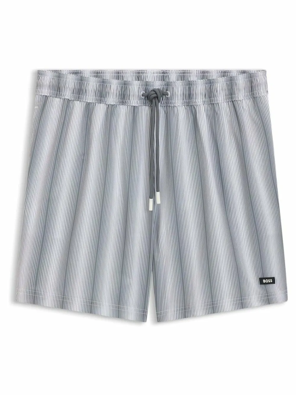 Hit the beach in style with the Flounder Stripe Swim Shorts by Boss, featuring a classic striped pattern for a timeless, nautical look. Made from lightweight, quick-drying fabric, these swim shorts ensure comfort and durability during all your water activities. Perfect for combining effortless style with functional performance on sunny days. Machine washable. 56% Polyester, 44% Elastomultiester.