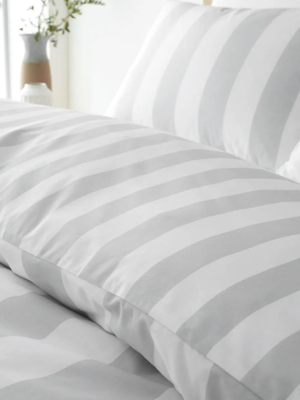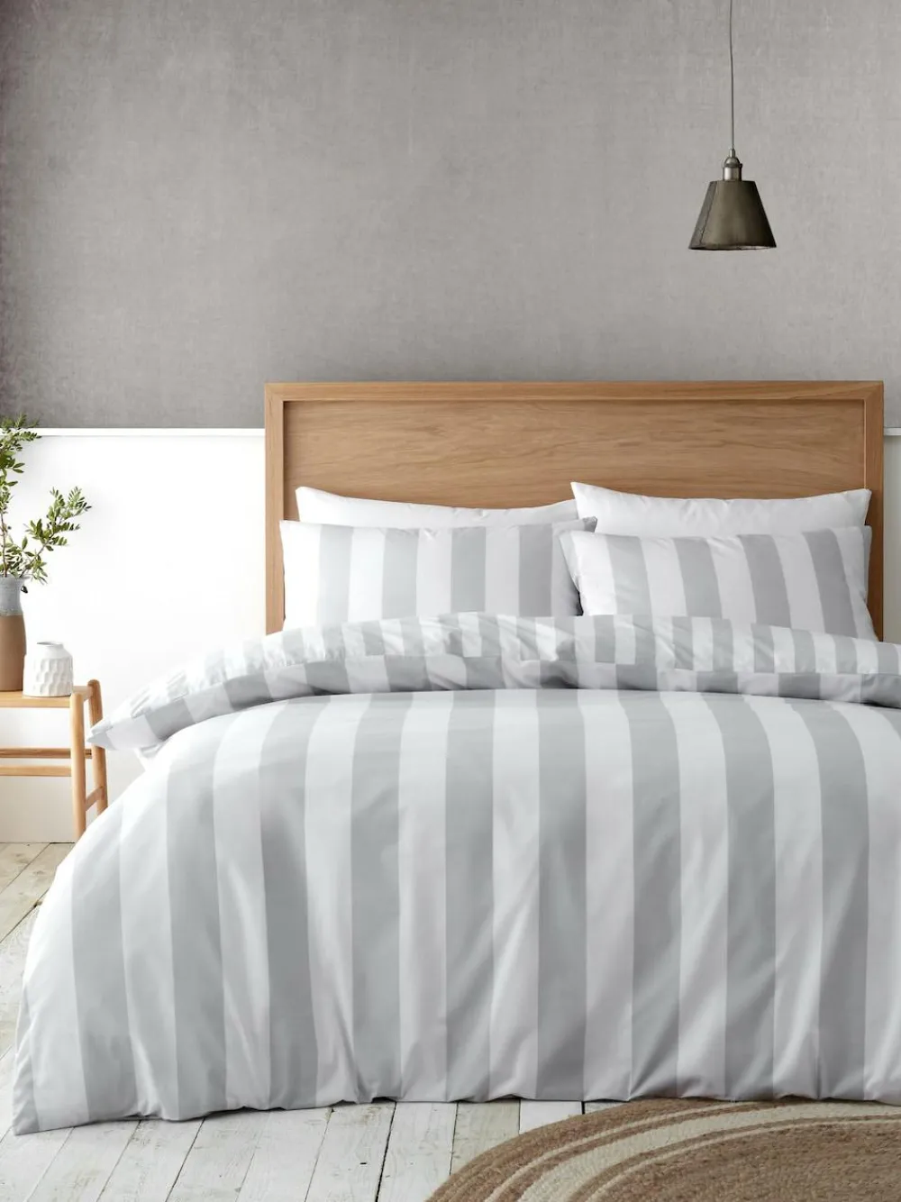 Sale Catherine Lansfield Cove Stripe Reversible Duvet Cover Set Silver Grey