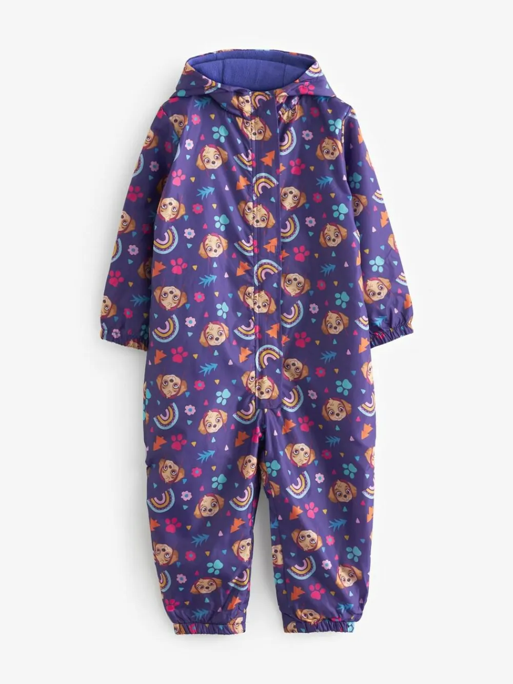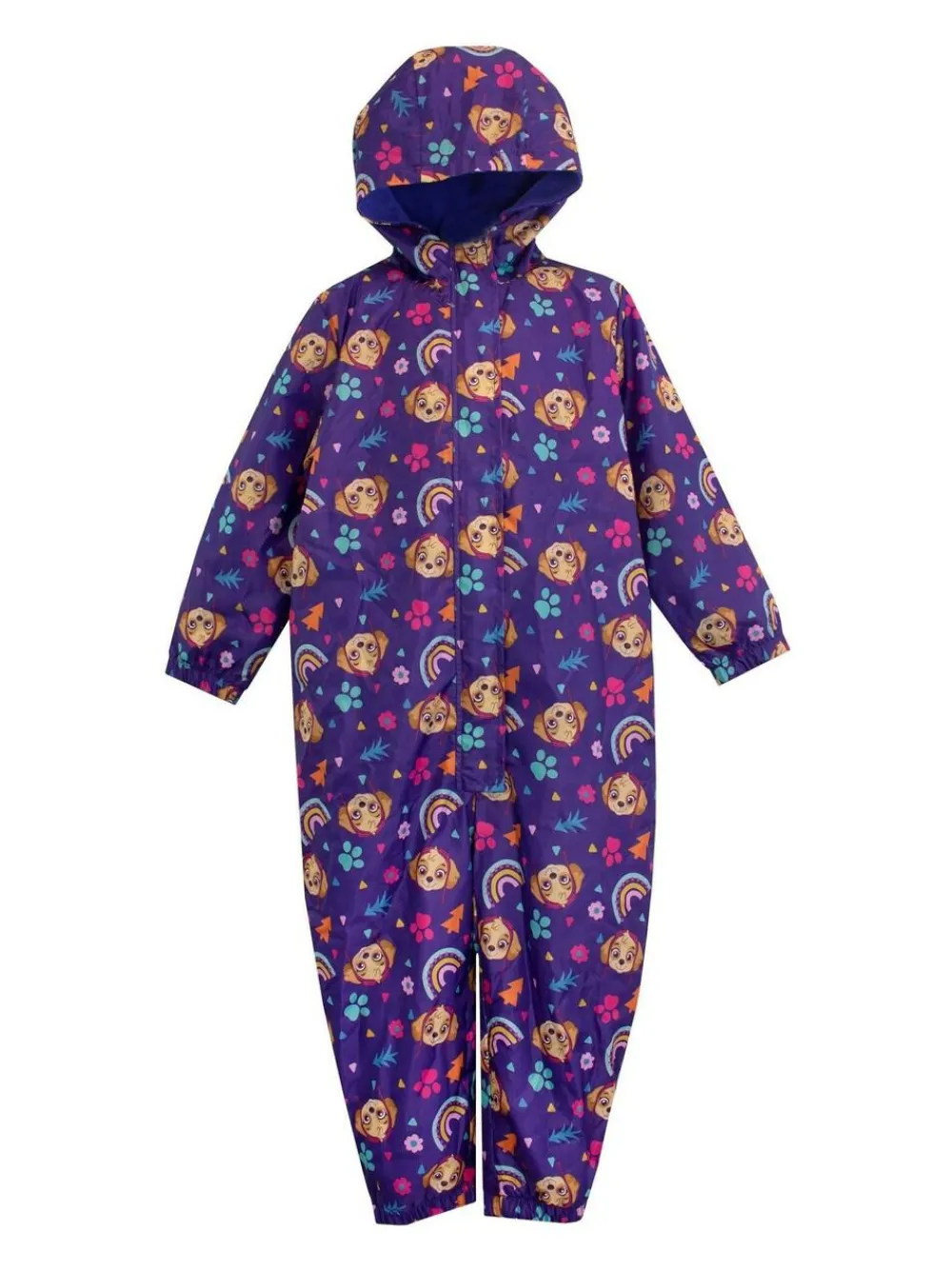 This pup’s gotta fly! Your little patroller can take to the skies with Skye even in rainy weather with this adorable Paw Patrol puddle suit! This purple hooded all-in-one features an all-over print of Skye with trees, flowers, paw prints and rainbows and has a zip fastening and elasticated cuffs to keep your pup dry on their missions. The hood and super soft fleece lining will keep them cosy and warm no matter the weather! They’ll be ready to take to the skies with Skye and friends in this adorable Paw Patrol rainwear! Wipe clean only. 100% Polyester. Warning: Keep away from fire and flames.