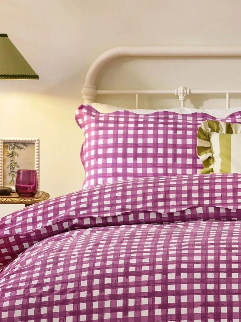 Sale Furn Red Scalloped Edge Gingham Pillowcase Pair
