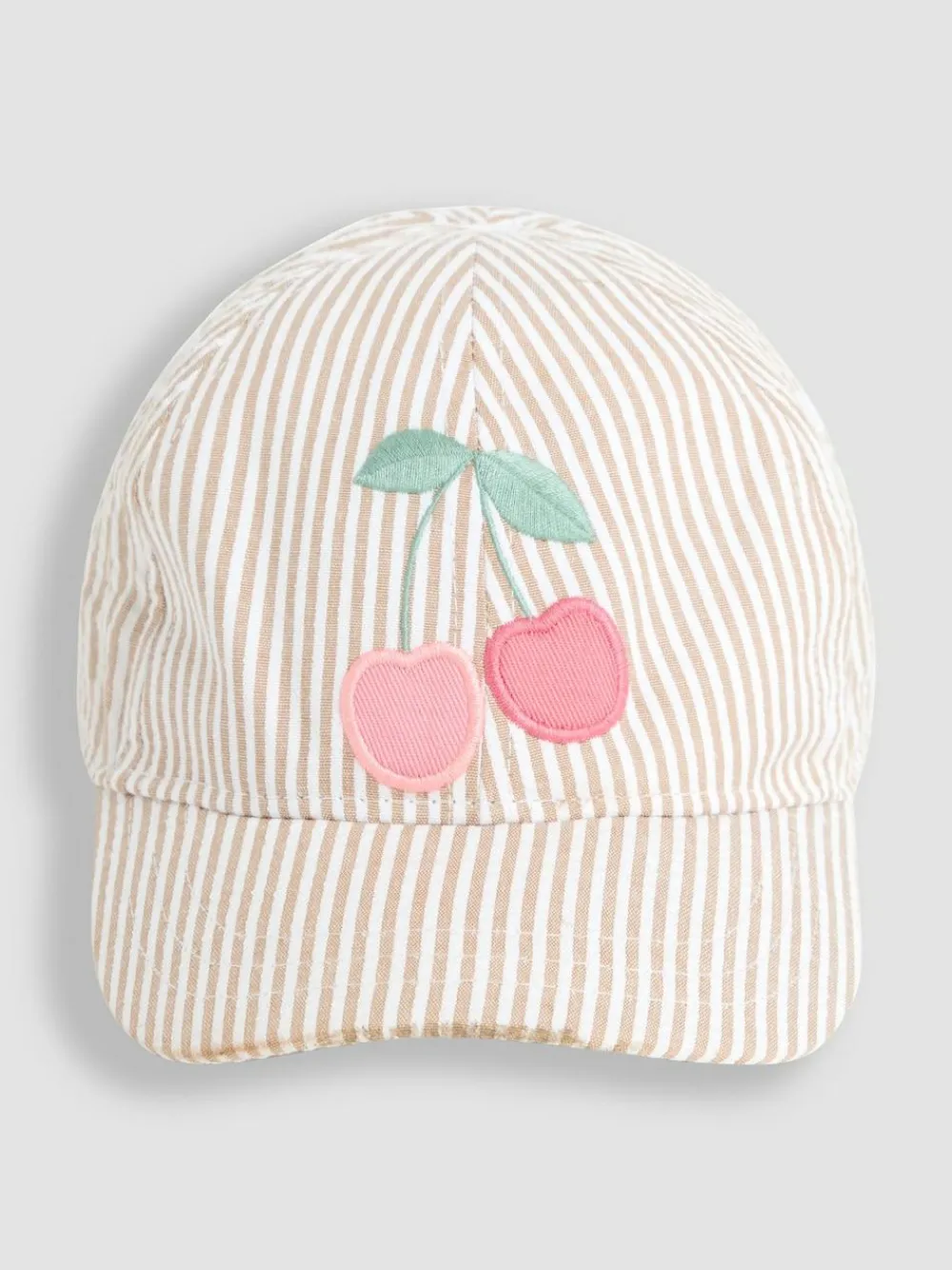The perfect pick for those sun-chasing days, this comfy striped cap will keep little heads safe from harmful UV rays while being a super fun accessory. On the neutral pinstripe base is a playful cherry appliqué that little ones will love. The practical rip stop strap is adjustable at the back so that your little explorer can play all day in carefree comfort. Pinstripe cream cap Cherry appliqué Holes for ventilation Rip stop strap to adjust Hand Wash only Main 58% Polyester, 42% Cotton. Lining 100% Polyester.