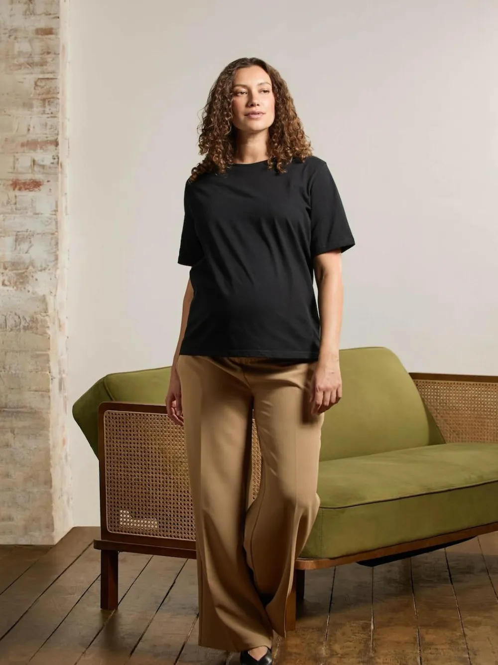 During your pregnancy, you’ll need a pair of smart trousers for formal occasions that are also oh so comfy. Our Wide Leg Maternity Trousers will be the first trousers you reach for with irresistible comfort and sophistication in equal measure. With a drawcord detail and wide jersey elasticated waistband to wear under or over the bump, you can adapt these trousers to make them fit how you want. Style these trousers with shirts, t-shirts, jumpers, and cardigans — they’ll go with everything in your wardrobe. • Wide leg natural beige trousers • Wide jersey elasticated waistband to wear under or over the bump • Drawcord waistband • Pockets • Machine washable Model is 170cm (5 7′) and wears a size 10 93% Polyester, 7% Elastane.