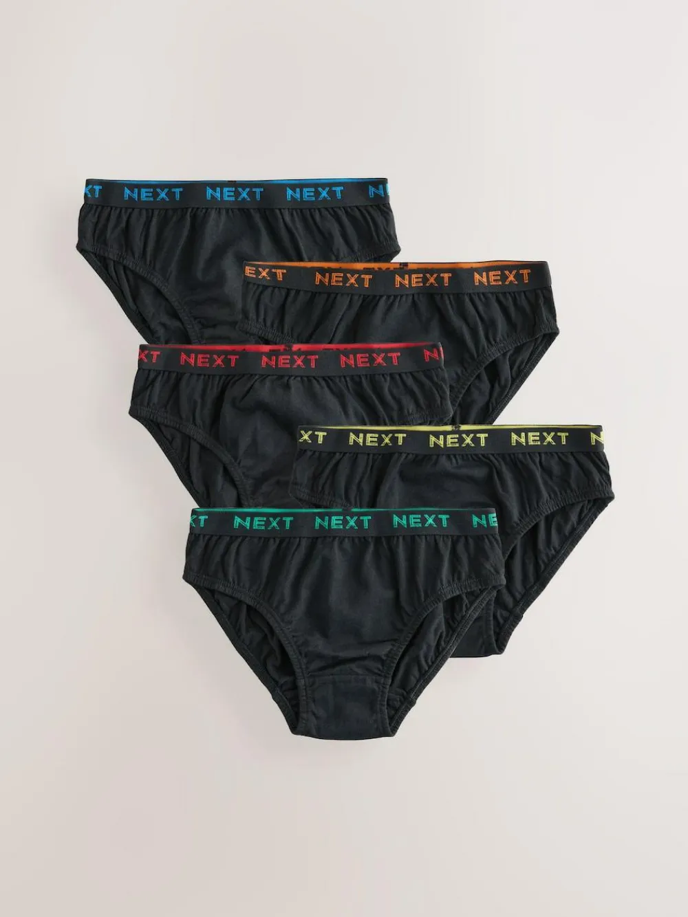 Sale Next 100% Cotton Briefs 5 Pack (1.5-16yrs) Black with Bright Jacquard Waistband