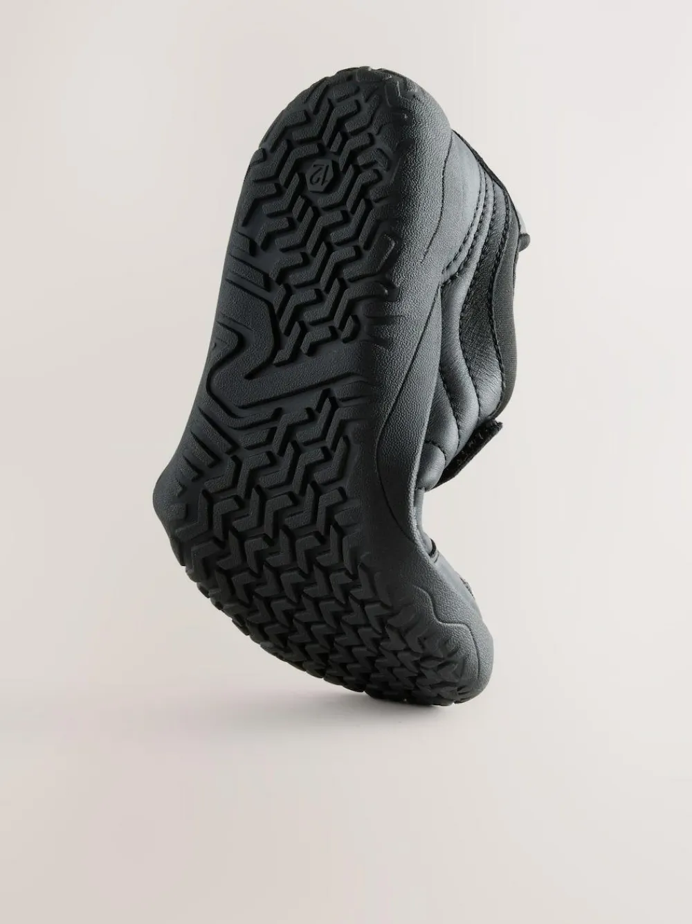 Introducing our new Barefoot school range. Specially designed with a wider toe box to allow toes to spread naturally. Our slip resistant, super flexible sole mimics the natural position of bare feet. With full grain leather uppers and a lightweight, stitch and turn construction, these school shoes are the perfect choice for the customer looking for a more natural fit. Micro fresh treated linings to fight odour causing bacteria, containing the biocide silver chloride. Full-grain leather upper Touch fastened strap Elasticated laces Flexible Barefoot sole *Micro fresh treated linings to fight odour causing bacteria – contains the biocide silver chloride View the How to Measure and Fit at Home Guide Upper – Leather, Textile, Lining & Sock – Textile, Sole – Other Materials.