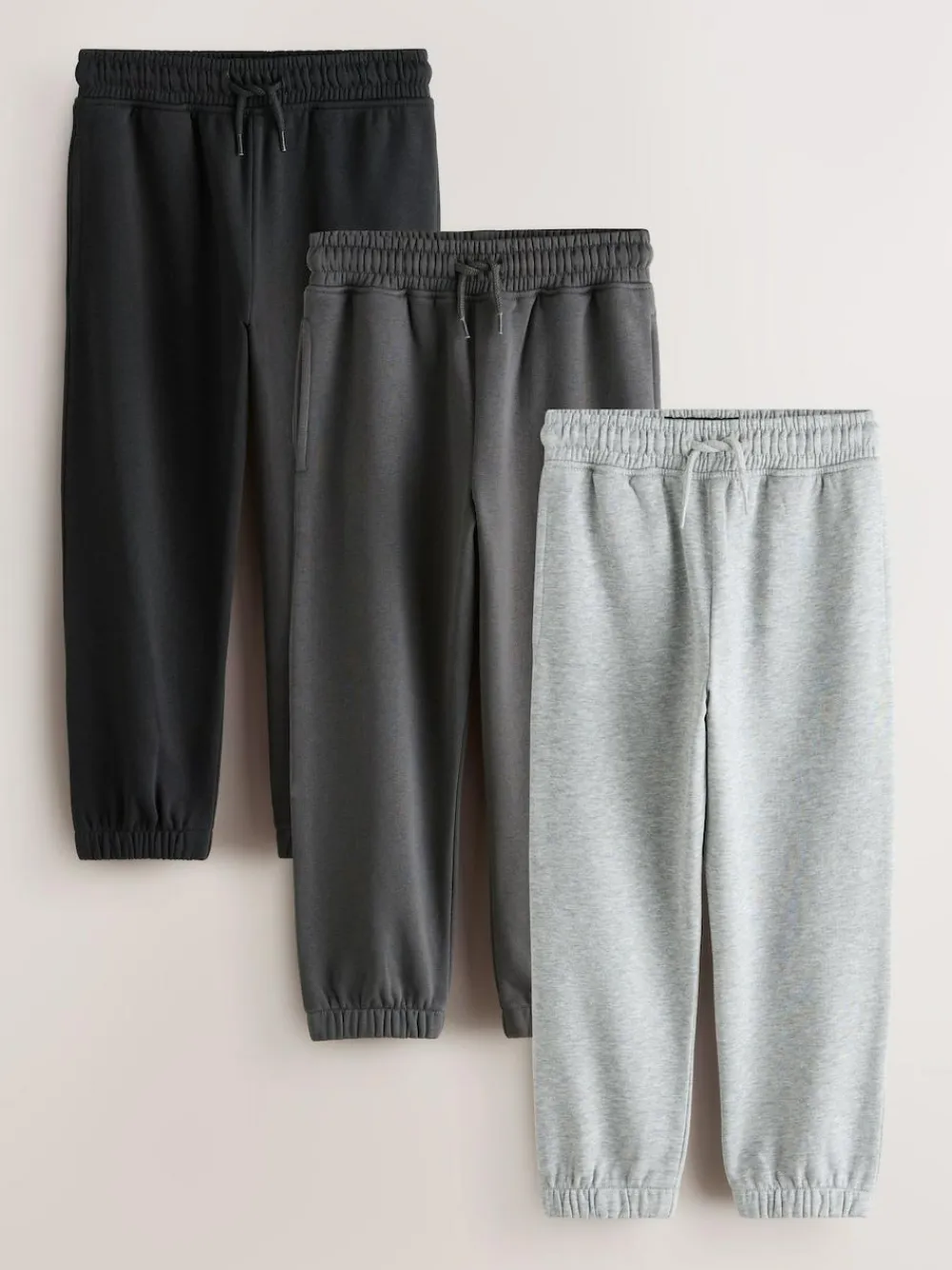 Fill their wardrobe with this three-pack of joggers. In a soft cotton jersey with an elasticated waist, pockets and ribbed hems for a stay-put fit. Soft cotton jersey Elasticated waist Pockets Ribbed hems Slim fit Machine washable. Jogger BLACK and Jogger ASPHALT 80% Cotton, 20% Recycled polyester. Jogger GREY MARL 70% Cotton, 22% Recycled polyester, 8% Viscose.