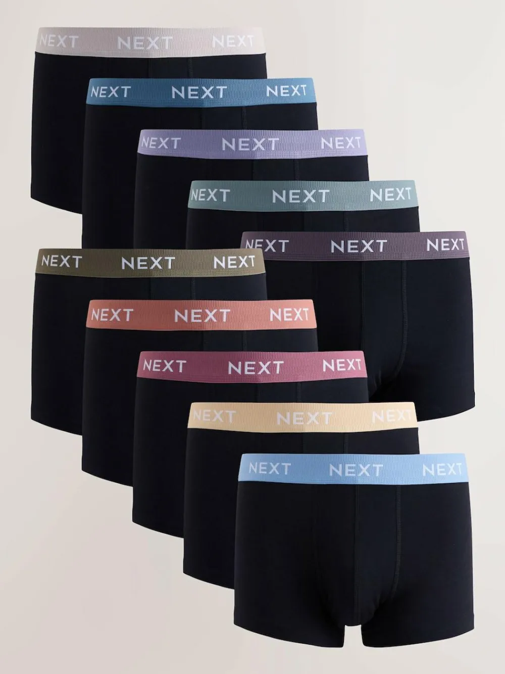 Sale Next Blue/Green/Yellow Waistband 10 pack Cotton Rich Blend Hipsters Boxers