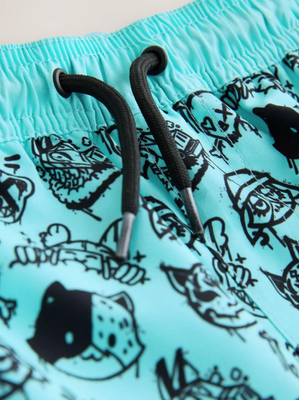 Get them ready for a holiday in the sun with these Fortnite swim shorts, in a choice of fun licensed graphic designs and colours. The swim shorts have an elasticated waistband with an adjustable drawstring, finished with pockets and a mesh lining. Swim shorts Fortnite Graphic print Elasticated waistband Adjustable drawstring Side pockets Machine washable. Main 100% Recycled polyester. Lining 100% Recycled polyester.