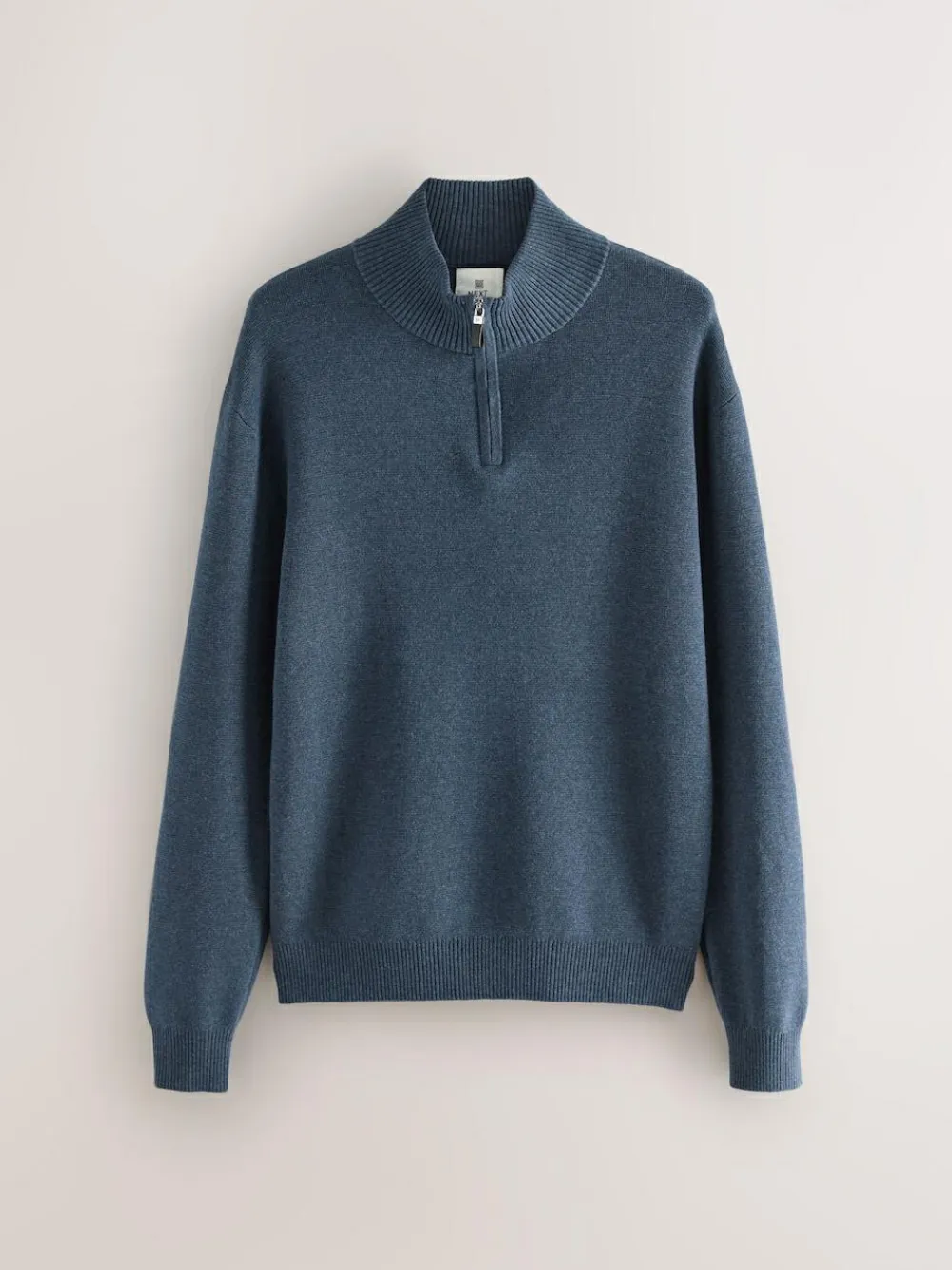 Sale Next Mid Blue Plain N.Premium Regular Fit 100% Cotton Premium Quarter Zip Jumper