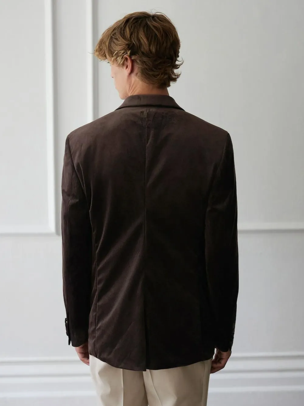 Add a touch of luxury to your formalwear with our brown velvet blazer. This standout piece is designed in a flattering fit and features a satin lapel collar, a welt chest pocket, satin tape detail front pockets and a single button fastening. Formal and functional and finished with decorative printed lining, you’re guaranteed to make a statement in your smart attire. Satin shawl lapel collar Welt chest pocket Satin tape detail front pockets Functional button detail at sleeves Printed lining Ticket pocket Dry clean only. Main 100% Recycled polyester. Lining 100% Polyester.