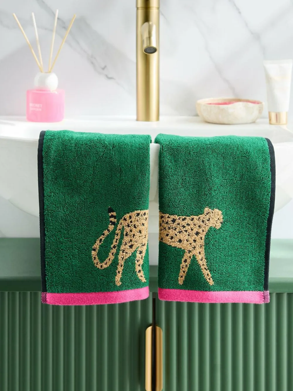 Sale Next Set of 2 Green Cheetah Print 100% Cotton Face Cloths