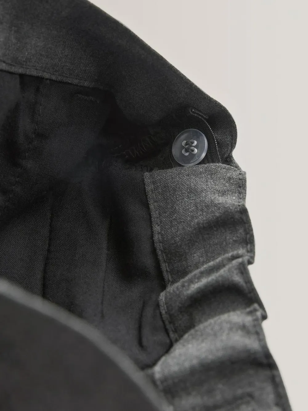 Go back to school in style with our grey, slim waist Formal Stretch Skinny Trousers. The adjustable waist and skinny leg silhouette make these flat-front trousers a modern, yet stylish addition to his school uniform. Made with an easy iron fabric, this pair of trousers also features Teflon® technology to help repel water-based stains. Key features: Easy Iron Fabric – Handy easy-iron finish Teflon® Technology – a treatment that repels water and water-based stains for easy cleaning and quick drying Machine washable Adjustable waist Flat front Skinny leg style Slim waist Machine washable. 63% Recycled polyester, 34% LENZING™ ECOVERO™ Viscose, 3% Elastane. This product is made with teflon. Teflon® is a registered trademark of DuPont.
