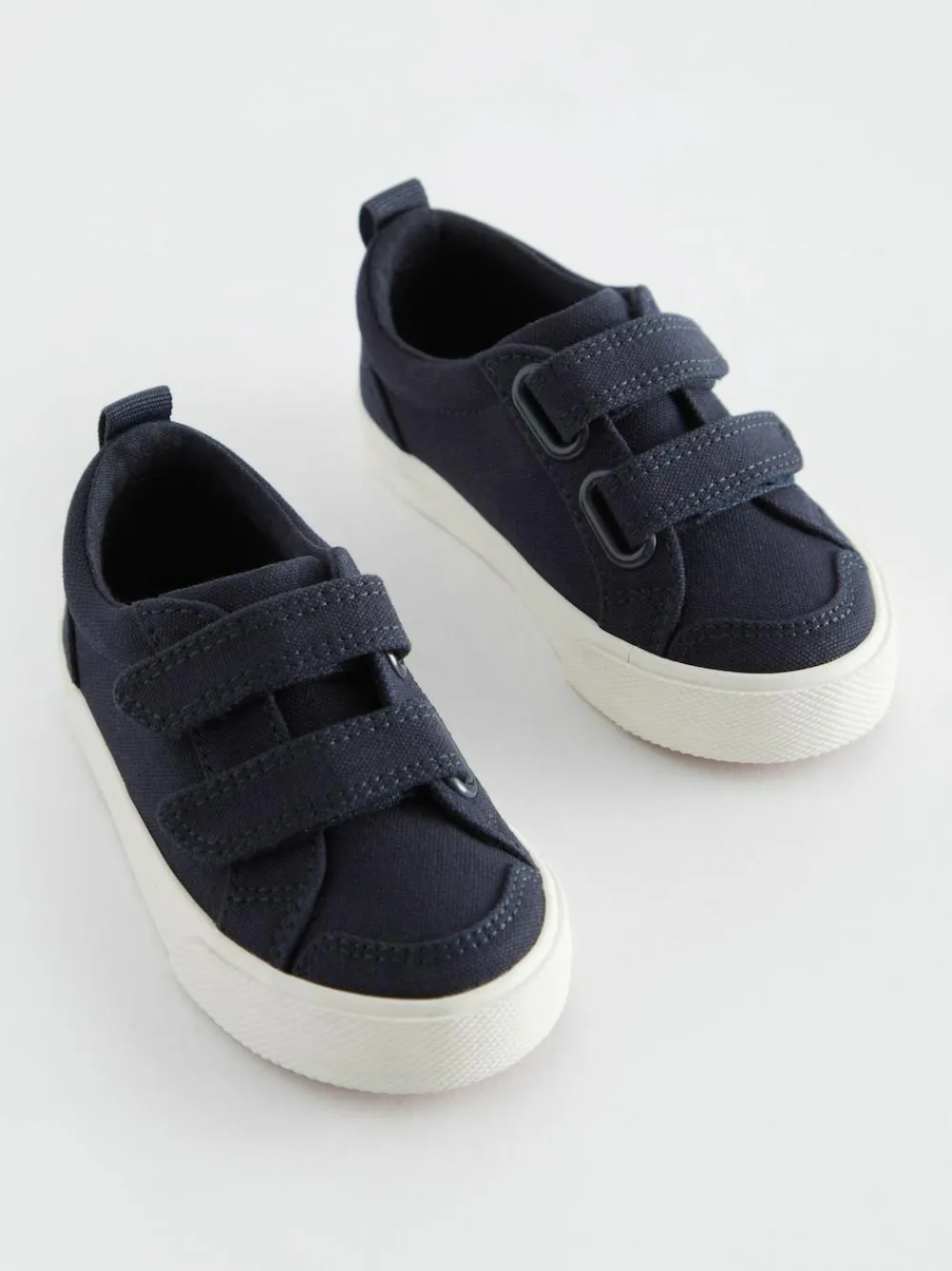 Make sure they’re stepping out in style and comfort with a pair of our wide fit navy canvas two strap touch fastening shoes. Designed with touch and close fastening straps to make getting them on and off a breeze, they are also adjustable to get the most comfortable fit. In a wide range of colours and designs, there is sure to be a pair to suit their style. Strapped detail Touch fastening Comfortable fit Sizes 3-9 have two straps Sizes 10-1 have three straps Sizes 3-8 have two straps, sizes 9-1 have three straps View the How to Measure and Fit at Home Guide Upper – Textile, Lining & Sock – Textile, Sole – Other Materials.