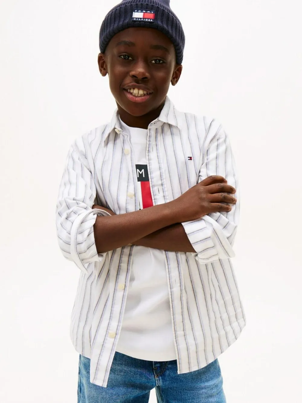 Reach for this shirt on semi-formal occasions, when the stretch-enhanced Oxford cotton and timeless vertical stripes will ensure a sharp silhouette.Highlights• Stretch Oxford cotton• All-over vertical stripe• Semi-spread collar• Rounded one-button cuffs• Signature tape inside neckline• Tommy Hilfiger branding• Tommy Hilfiger flag embroidery on chestShape & fit• Regular fitComposition & care• 97% cotton, 3% elastane Washable. 97% Other fibres, 3% Elastane.