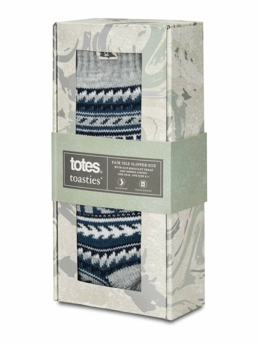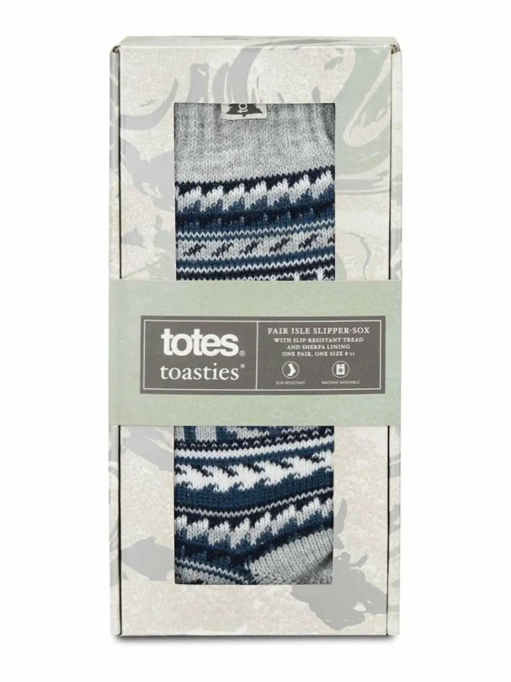 Sale Totes Blue Toasties Mens Sherpa Lined Fair Isle Slipper Socks