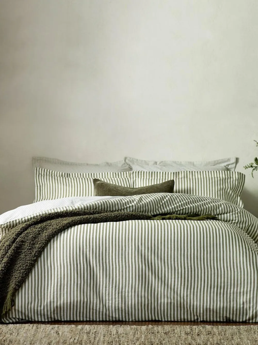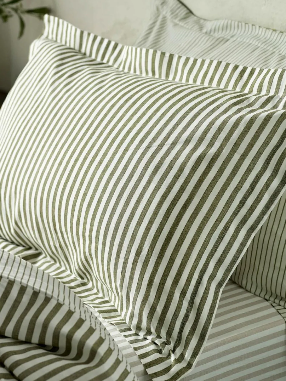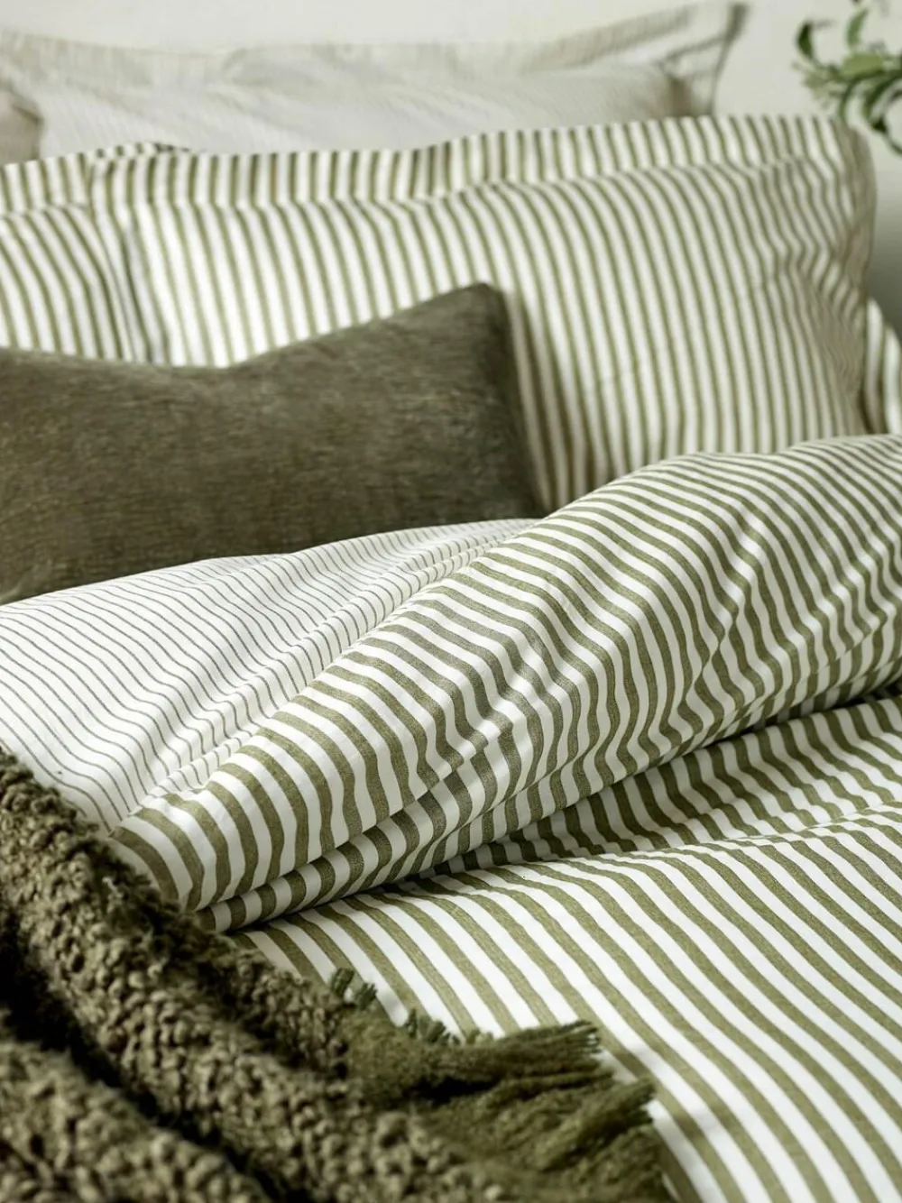 Sale Yard Olive Green Hebden Striped 100% Cotton Duvet Cover and Pillowcase Set
