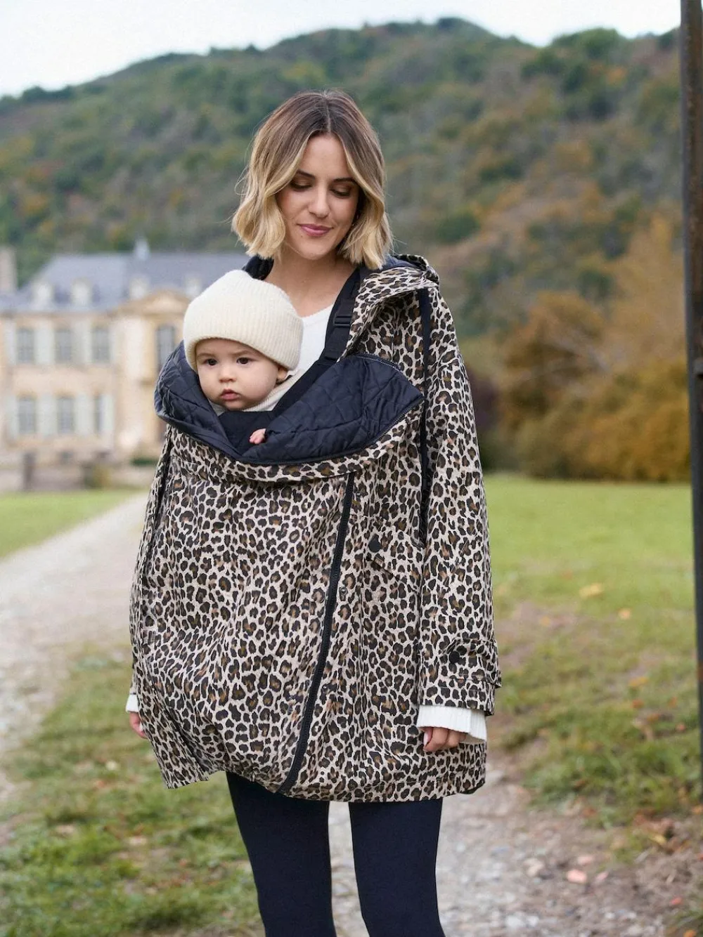 A Seraphine babywearing parka is a must for mums, and this one is waterproof. The easy fit grows with you through pregnancy. Then after baby is born, a game-changing kangaroo panel zips on at the front to keep your little one warm and dry in the baby carrier. Made in a waterproof cotton-blend fabric, this leopard print coat features a warm quilted lining and a fixed hood with a peaked cap and drawstring ties. Perfect for even the wettest of weather. 3 in 1 style for pregnancy, babywearing and after Easy fit – allows room to grow Zip-on kangaroo panel fits over a baby carrier or sling Waterproof cotton blend fabric Warm quilted lining Fixed hood with peaked cap and drawstring Buy your pre-pregnancy size. With over 20 years of maternity expertise, Seraphine styles are designed to grow with you, adapting with you through pregnancy and motherhood. Shell 62% Cotton, 38% Polyester. Lining 100% Polyester.