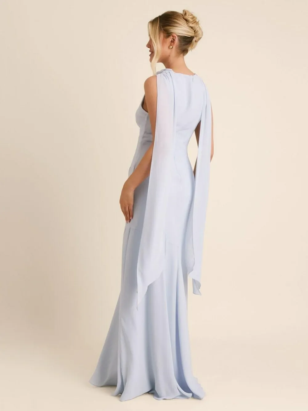 Six Stories Blue High Cowl Neck Drape Crepe Bridesmaid Dress^Women Maxi Dresses