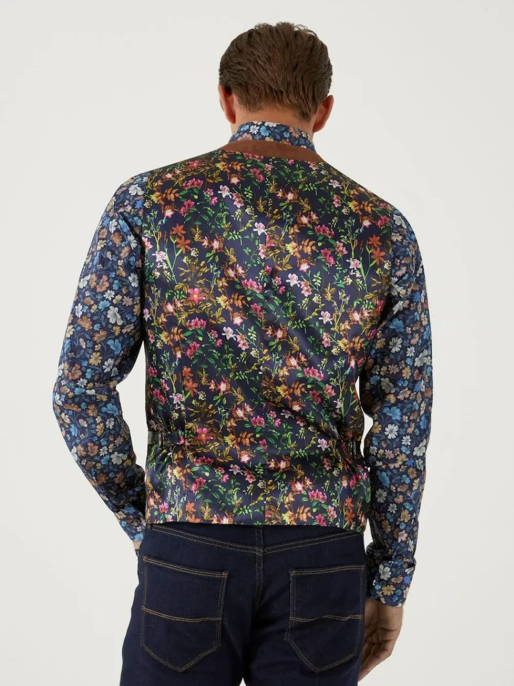 I’m Camplin, a single-breasted ginger brown waistcoat cut from a ginger suede cloth. Together with my adjustable back straps and jetted pockets, I’m just the ticket for channeling that classic countryside look. Take a look at my floral print lining too – I’d say it’s the cherry on top. Camplin single-breasted five-button fastening waistcoat in ginger fabric. Features include lower waist jetted pockets, jetted ticket pockets, floral print lining, and an adjustable back strap. Dry clean only. 100% Polyester.