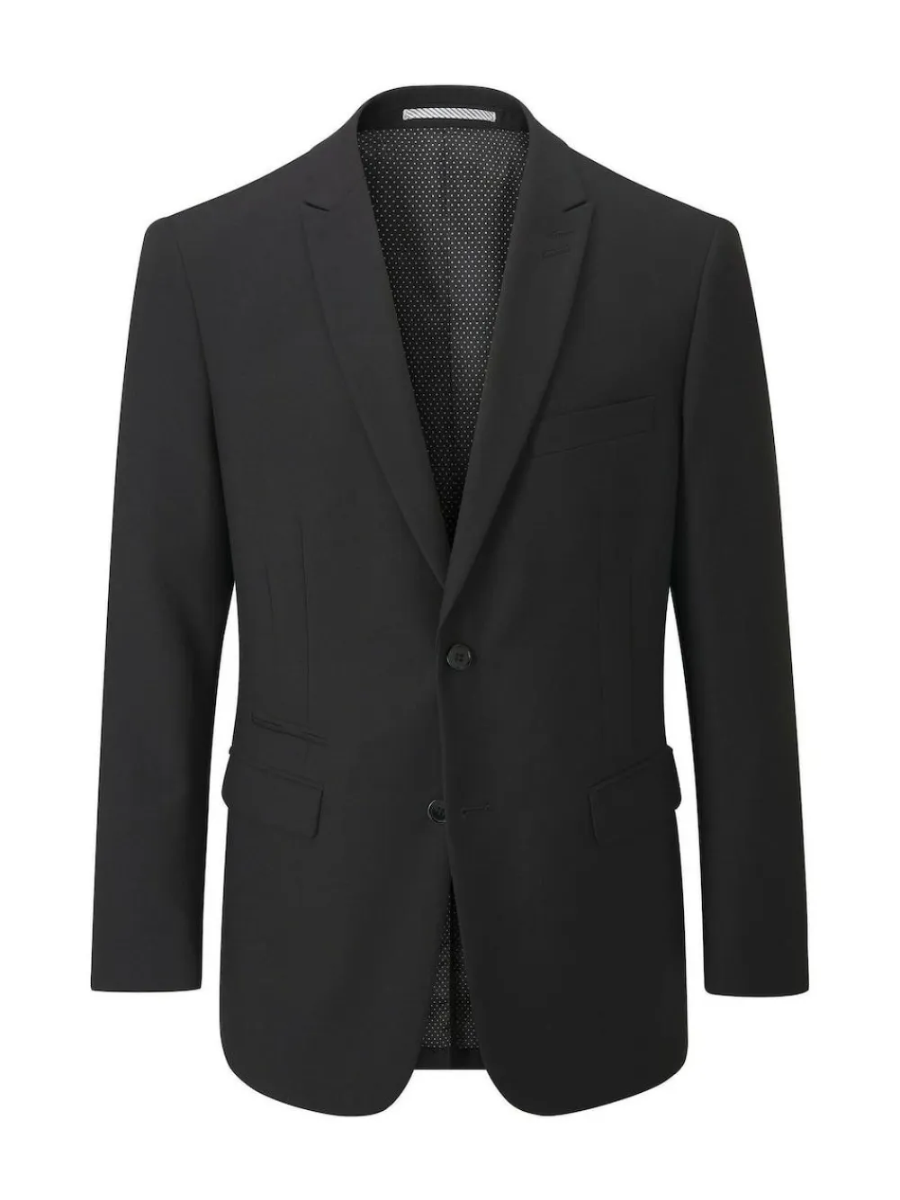 The Madrid suit is perfect for the office or any formal occasion! The tailored fit single-breasted suit jacket features include 2 button fastening, straight flap pockets, jetted ticket pocket, peak lapel with 2 button holes, and centre vent. See matching tailored trousers and waistcoat. Dry clean only. 80% Polyester, 20% Viscose.