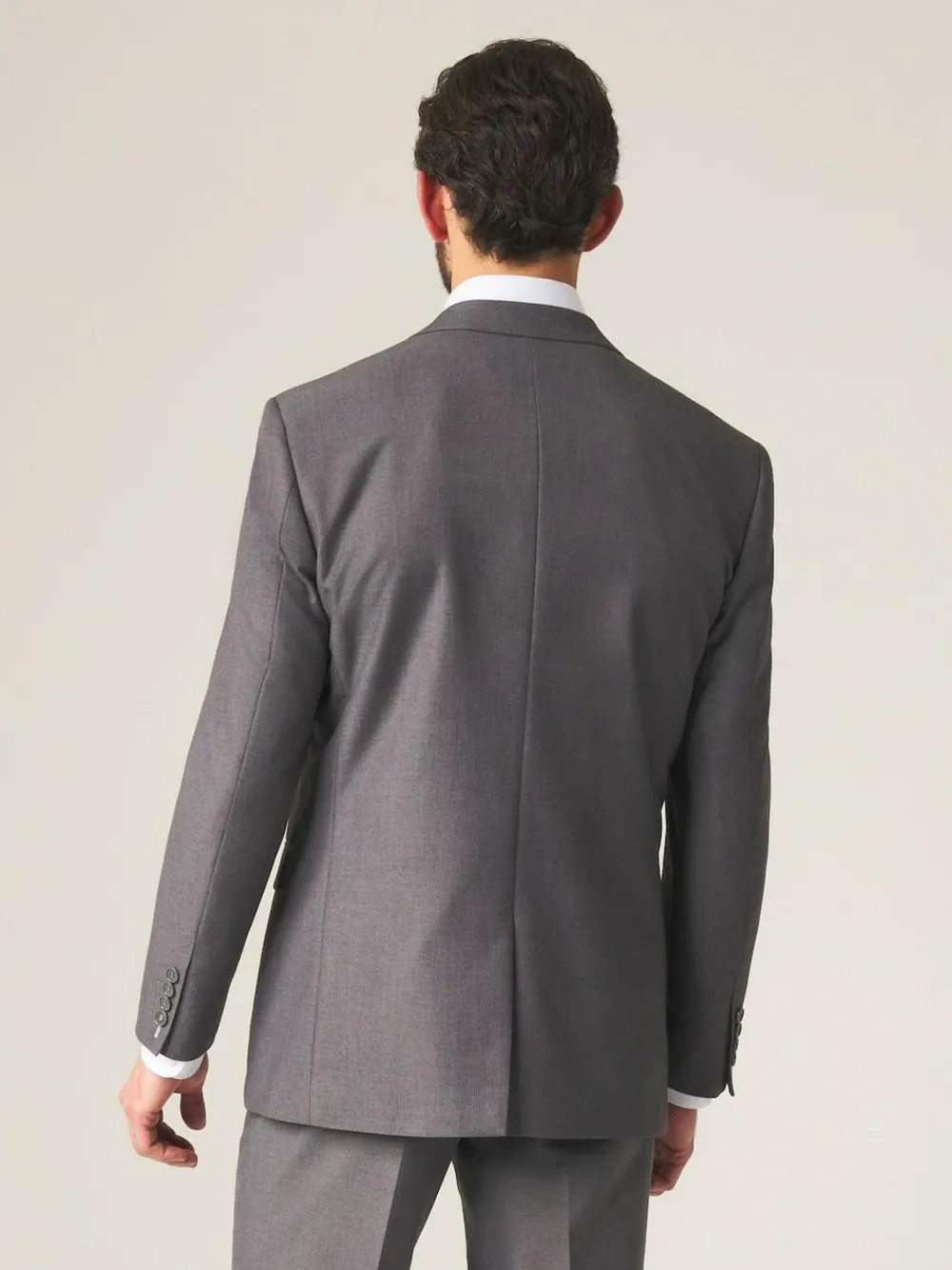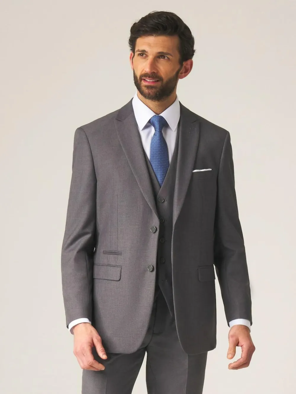 The Madrid suit is perfect for the office or any formal occasion! The tailored fit single-breasted suit jacket features include 2 button fastening, straight flap pockets, jetted ticket pocket, peak lapel with 2 button holes, and centre vent. See matching tailored trousers and waistcoat. Dry clean only. 80% Polyester, 20% Viscose.