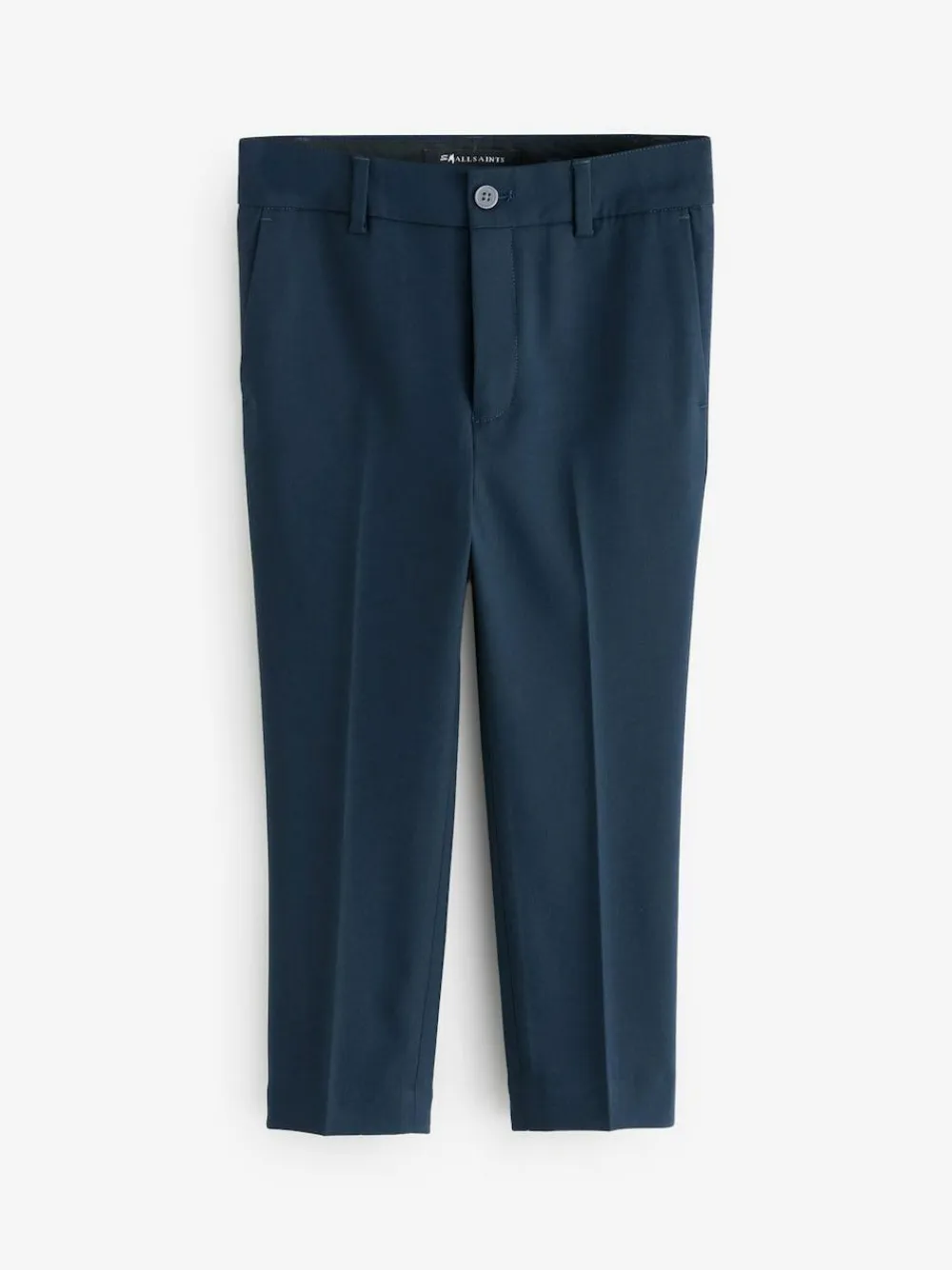 Add a touch of flair to his formalwear with the Moad suit trousers from smALLSAINTS. These slim fit suit trousers are designed with a smart front crease, zip and button closure and belt loops. They are finely finished with side pockets and AllSaints branded trims. For a top to toe smart style, team with the matching jacket. Slim-fit Zip and button closure Two side pockets AllSaints branded trims Matching jacket available Machine washable. 68% Polyester, 30% Viscose, 2% Elastane.