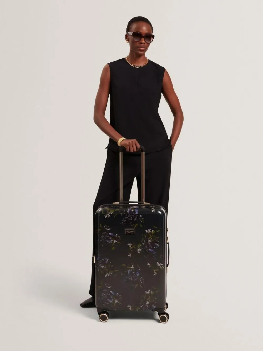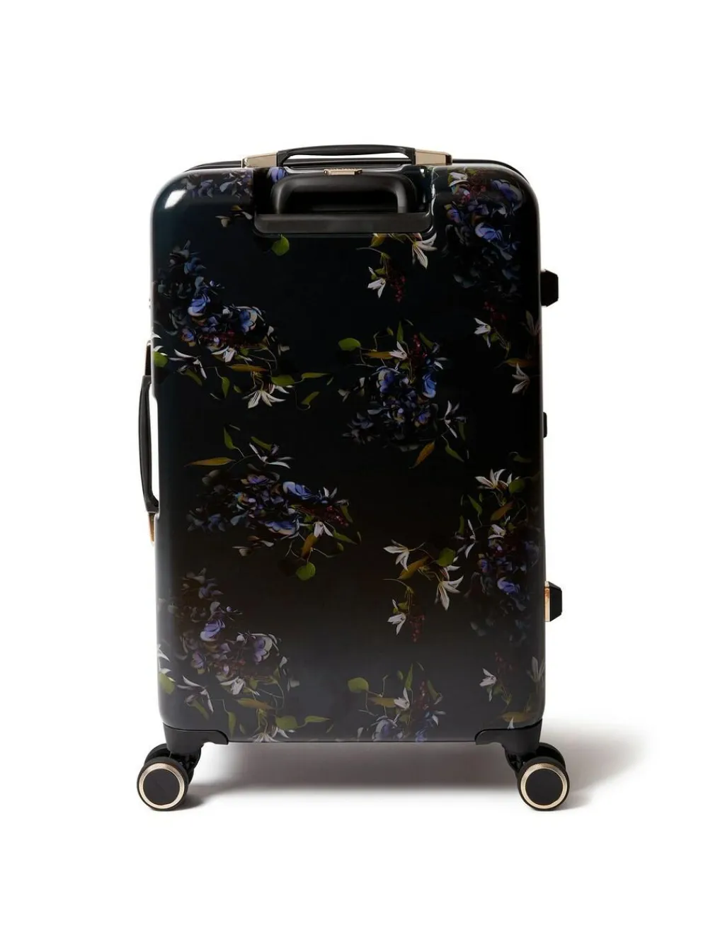 Midnight Bloom luggage collection by Ted Baker captures the quiet drama of unfolding petals with a rich, moody palette of deep florals. Finished with Ted Baker’s signature gold details and a sculpted, structured form, this 4-piece travel collection includes a Vanity Case, Cabin, Medium, and Large Suitcase and brings impact to every journey. Details include a signature print lining with an organised interior to make packing easy, an embedded TSA lock, and double wheels with branded wheel caps. Height 68cm Width 45cm Depth 28cm 100% ABS (Acrylonitrile Butadiene Styrene).