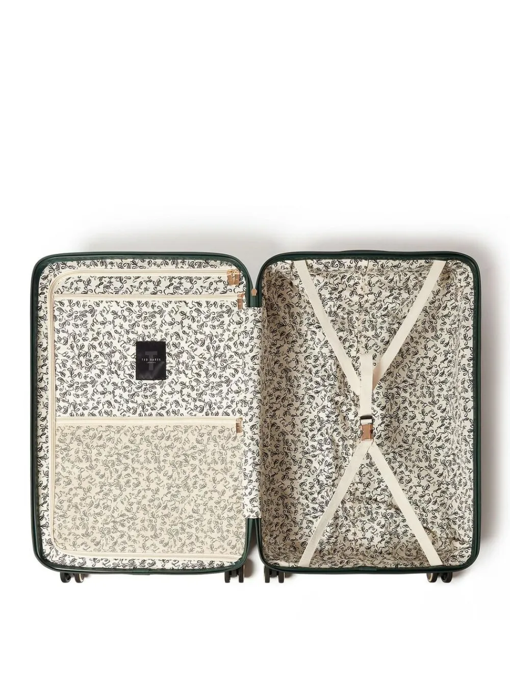 Inspired by Ted Baker’s Icon Bag, Icon Case brings statement design to every journey. With a croc embossed finish, bold branding, and a refined silhouette, Icon Case is designed for the traveller looking to stand out. This beautifully coordinated 4-piece collection includes a Vanity Case, Cabin, Medium, and Large suitcase. Details include a signature print lining with an organised interior to make packing easy, an embedded TSA lock, and double wheels with branded wheel caps. Height 79cm Width 52cm Depth 33cm 100% ABS (Acrylonitrile Butadiene Styrene).
