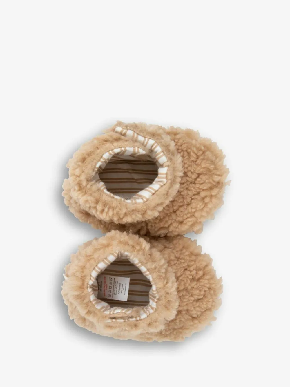 Super cute and super soft, these fluffy Sherpa fleece booties will keep baby’s feet cosy and warm. These booties are fully lined and have a soft flexible non-slip embossed sole to prevent slipping when baby is on the move. Soft and fluffy sherpa fleece Touch and Close fastening side opening at ankle Textile grippy sole Jersey lined Machine washable Upper – 100% Polyester, Lining. and Sock – 100% Polyester. Sole – 100% EVA.