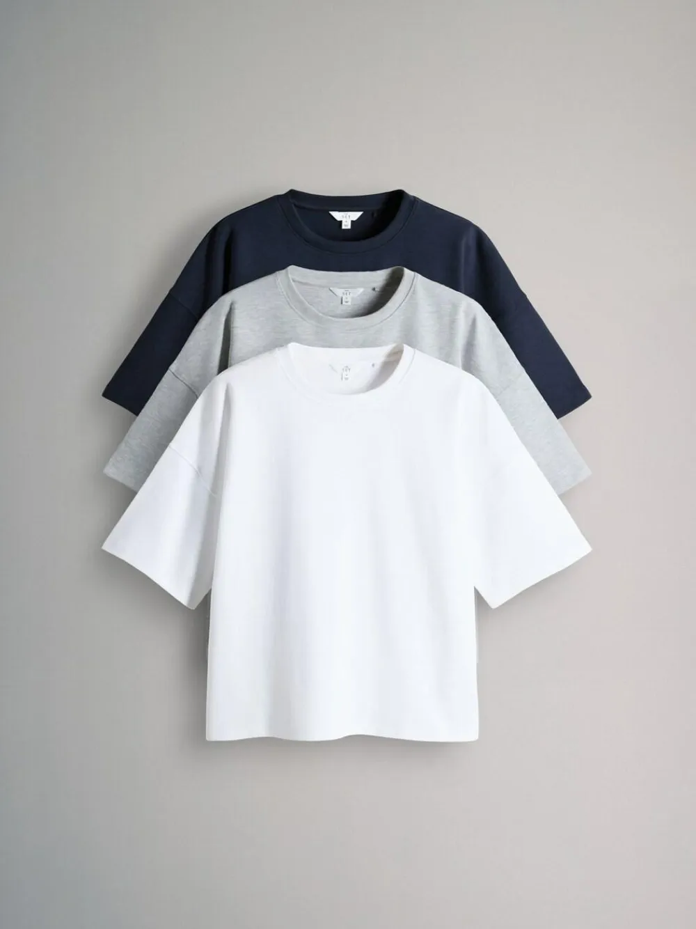 Stock up on elevated staples with this 3 Pack of Heavyweight Premium Boxy T-Shirts from THE SET. This multi-pack offers three essential colours: classic white, rich navy blue and versatile grey marl. Crafted from a premium heavyweight cotton-rich fabric, these t-shirts feature a comfortable crew neck, dropped shoulders and a flattering boxy, relaxed fit, making them a perfect foundation for modern casual styling. 3 pack Crew neck Relaxed fit Heavyweight T-shirt 80% Cotton, 20% Polyester. T-shirt and T-shirt 85% Cotton, 15% Polyester.