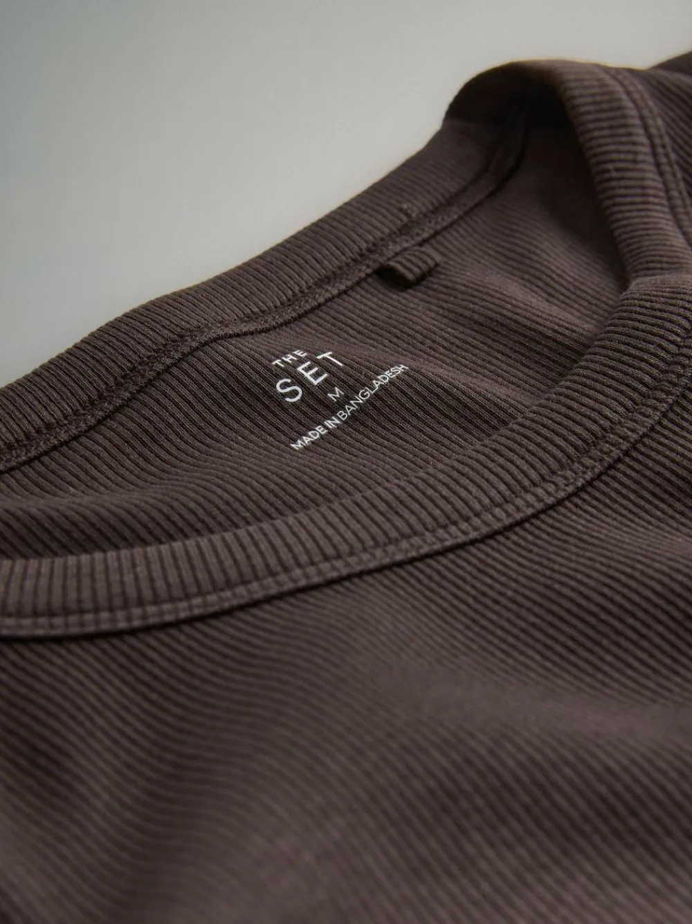 Refresh your casual dress collection with THE SET 3 Pack Short Sleeve Ribbed Midi Dresses. Including three core neutral colours: classic black, rich chocolate and deep charcoal. Each dress is crafted from comfortable ribbed fabric, offering a flattering, close fit. They feature a simple crew neck and short sleeves, making them perfect for warmer weather or layering. The midi length is finished with a neat split hem, adding movement and contemporary detail. 3 pack Midi length Rib fabric 3 x Dress 95% Cotton, 5% Elastane.