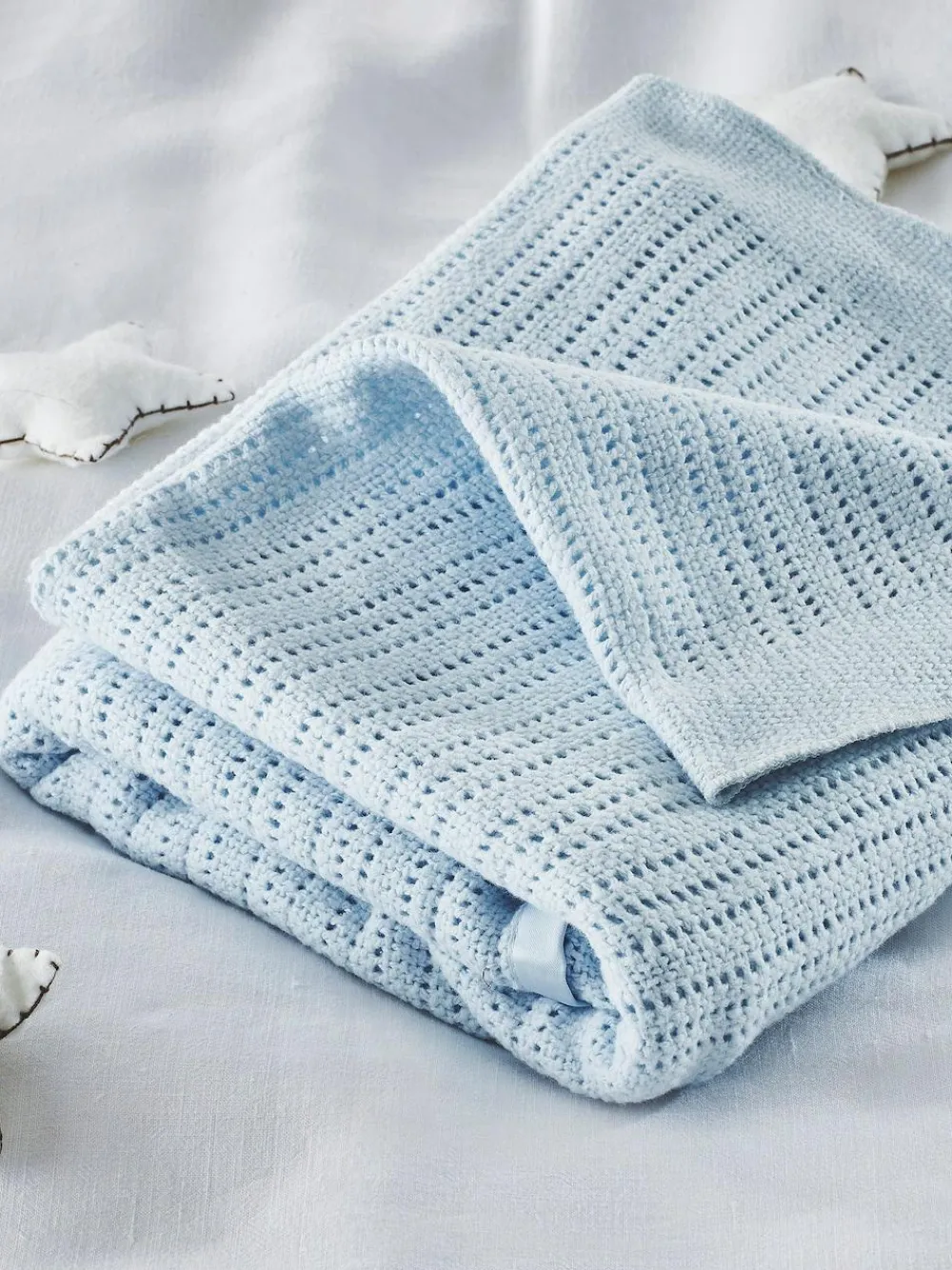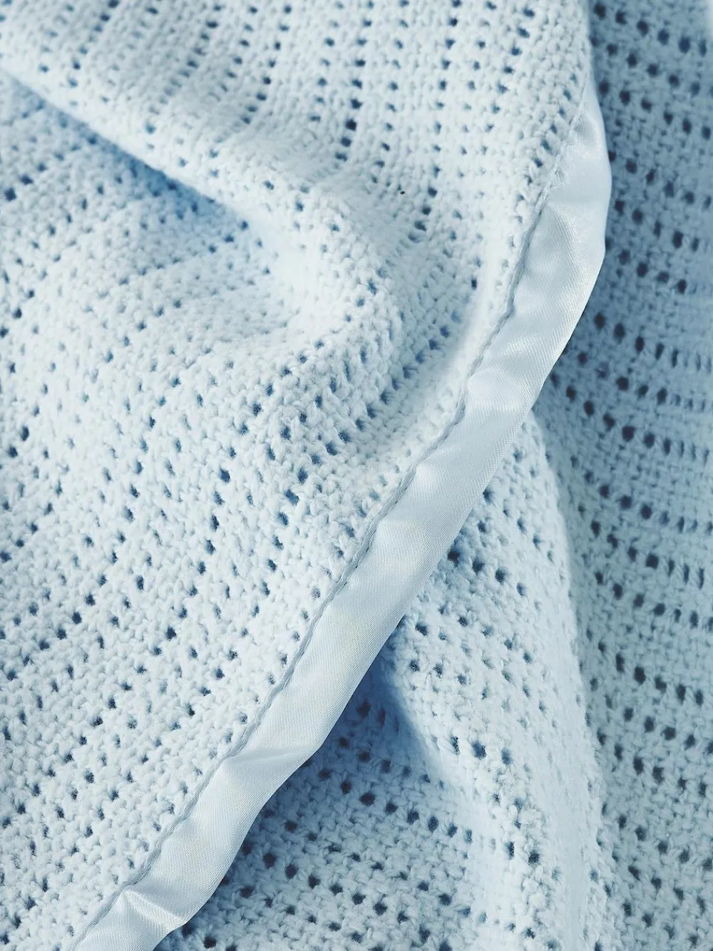 Easily the best cellular blanket on the market, this is made of pure cotton that’s gently brushed for extra softness, with a silky satin edge that babies love to stroke. It’s a beautifully lightweight woven blanket with a clever ‘cell’ construction that traps air to keep your baby warm in winter and cool in summer. Choose from four gorgeous colours in cot and pram sizes. Small: W75cm x L100cm Medium: W150cm x L100cm Length 10cm Width 75cm Machine washable. 100% Cotton.