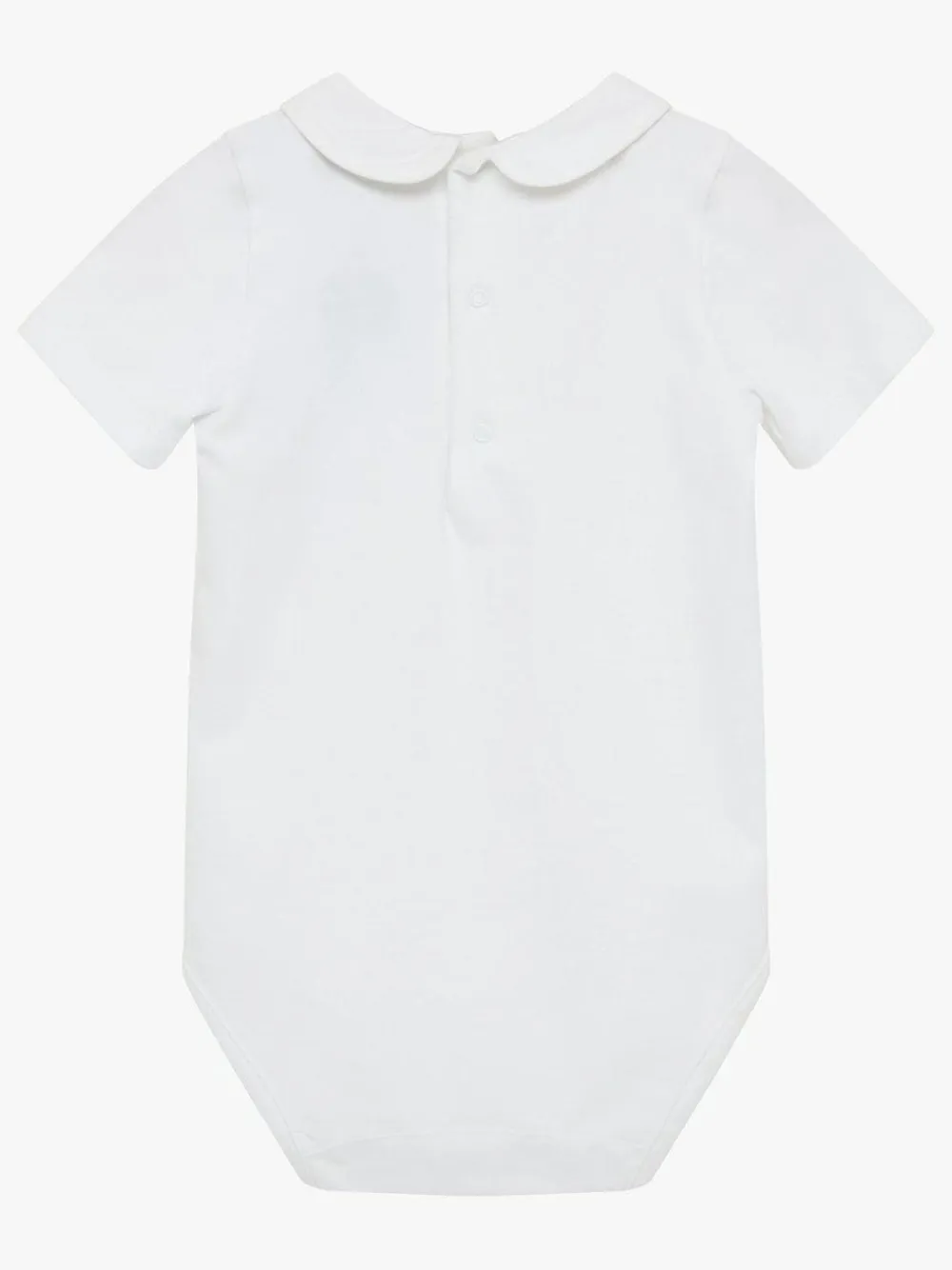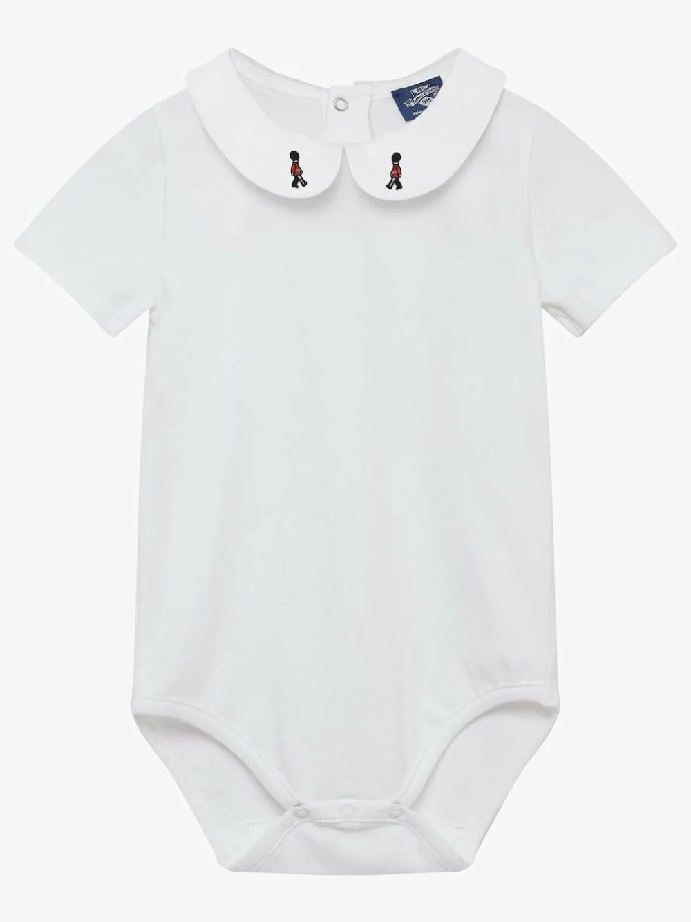 This soft jersey body features smart guardsman embroidered on its Peter Pan collar and is perfect for layering under dungarees & bib shorts for a great everyday outfit for baby boys. It fastens with poppers at the centre back and along the leg seams for easy dressing. Machine washable. 96% Cotton, 4% Elastane. Warning: Keep away from fire and flames.
