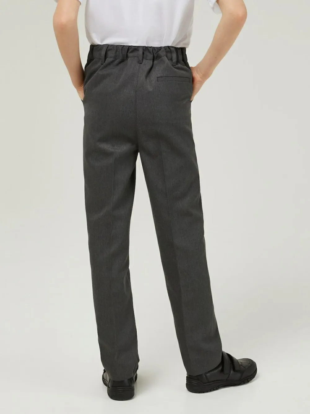 Trutex Basics boy’s trousers feature an internal waist adjuster and a slim leg style for practical and stylish school trousers. Available in ages 3 to 16 years. Quality fabric with stain-resistant finish and permanent stay smart creases for easy care and to reduce the need for ironing Functional zip and hook & bar fastening on ages 7 and above Mock fly with pull-on feature for ages 3 – 6 designed for comfort and ease of dressing Featuring belt loops and 2 side pockets for comfort and a practical school trouser Back pocket on ages 7 and above Machine washable Machine washable. 65% Polyester, 35% Viscose.