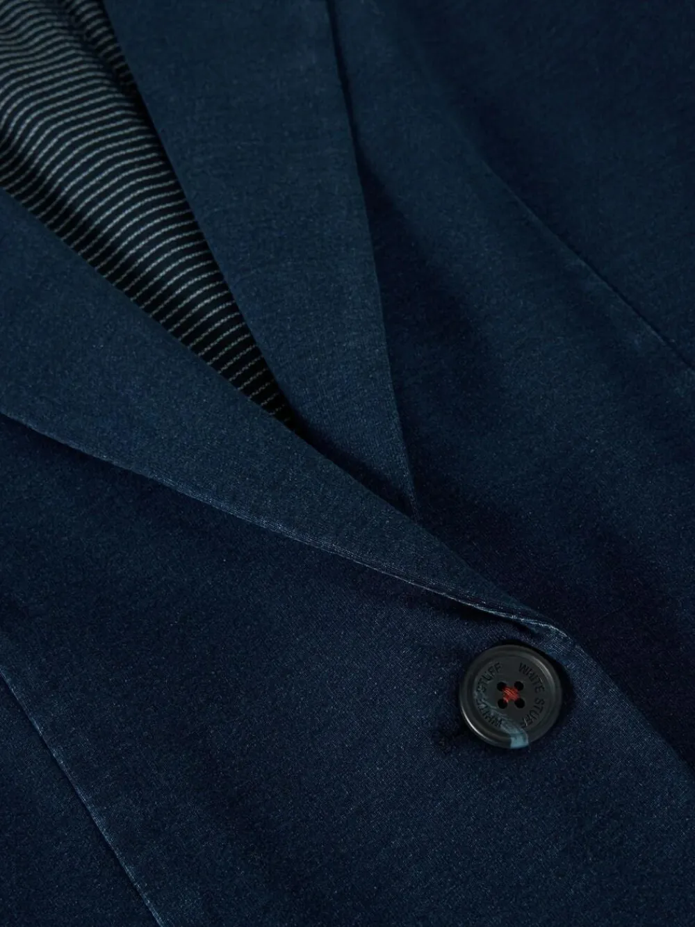 Soft jersey fabric with denim look more tailored blazer at the waist. Machine washable. 77% Organic cotton, 14% Polyester, 9% Elastane.