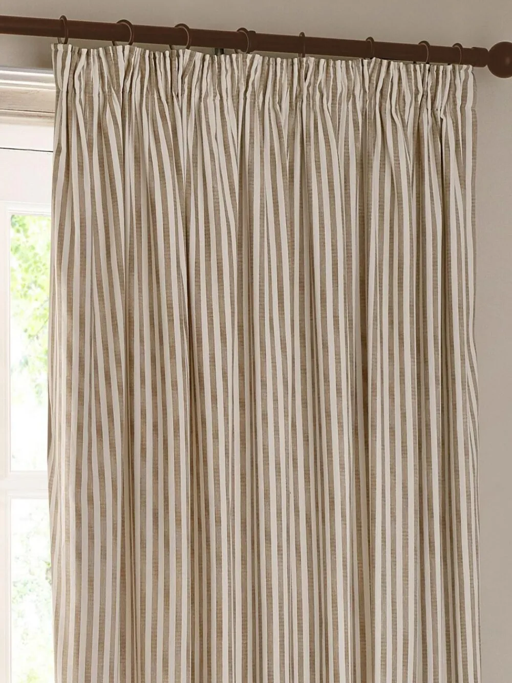 Transform your living space into a sanctuary with Natural Hebden Striped Pencil Pleat Curtains. Crafted from cotton, these curtains offer a soft, yet durable touch. The timeless, textured stripe design complements any minimalist or classic décor, while the room-darkening lining provides the perfect retreat from the outside world. Perfect for those who value natural materials, Hebden curtains are an investment in comfort and style, enriching your home environment without compromise. Width 229cm x 183cm Depth. For top tips on measuring and finding the perfect pair of curtains for you, read our handy guide here Machine washable. 100% Cotton.