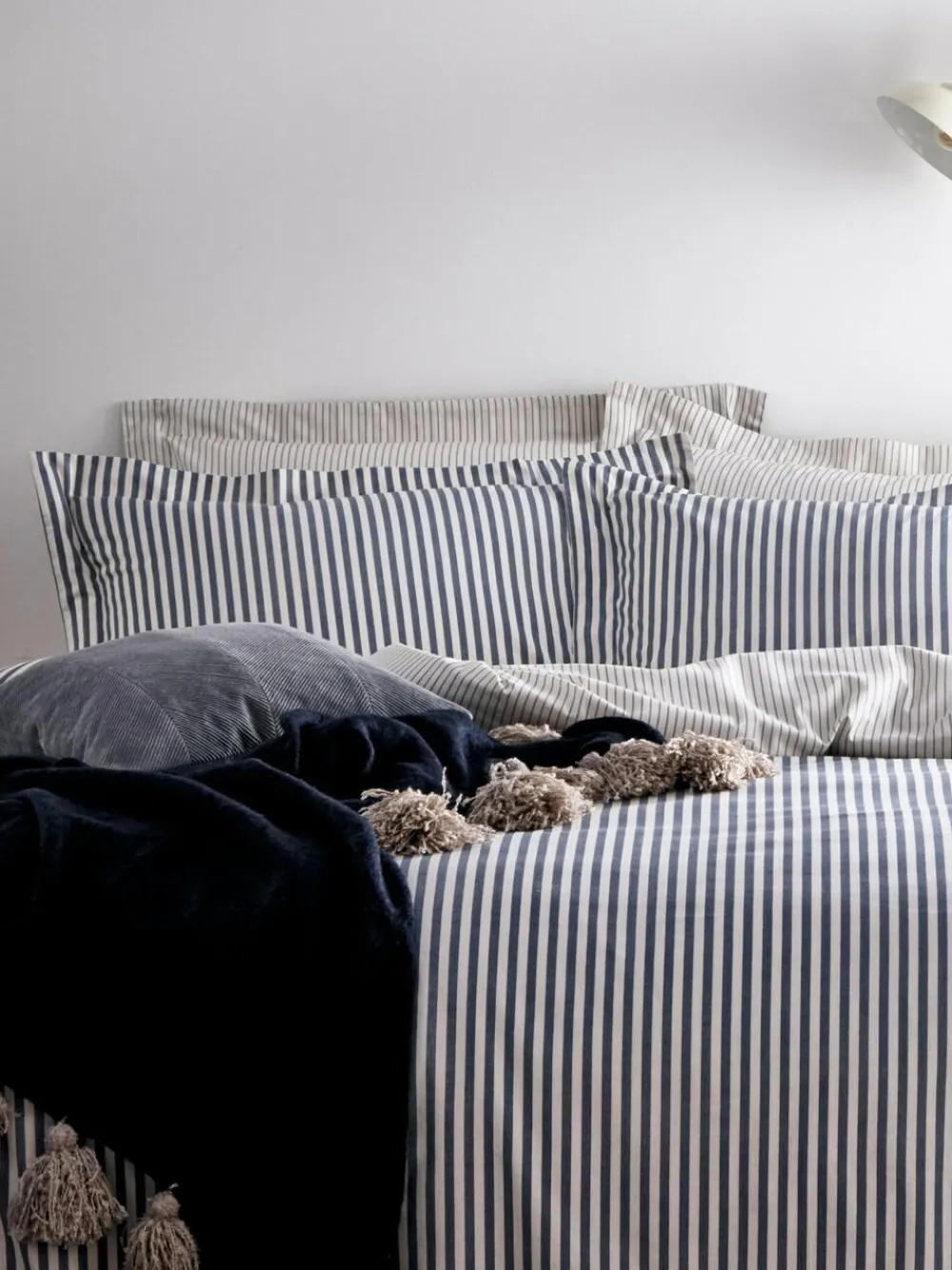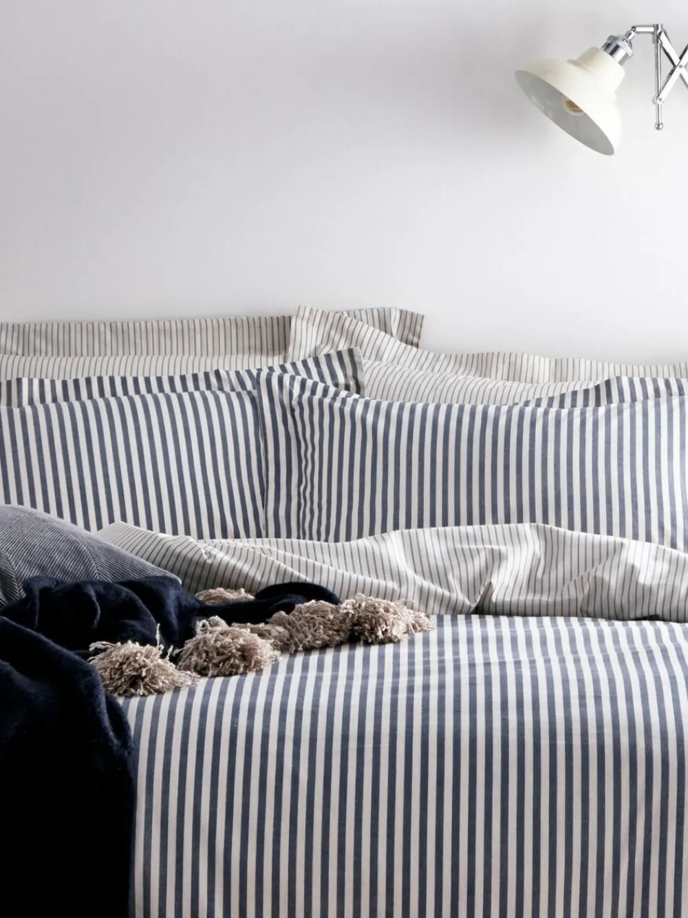 Yard Navy Blue Hebden Striped 100% Cotton Duvet Cover and Pillowcase Set^ Branded Bedlinen