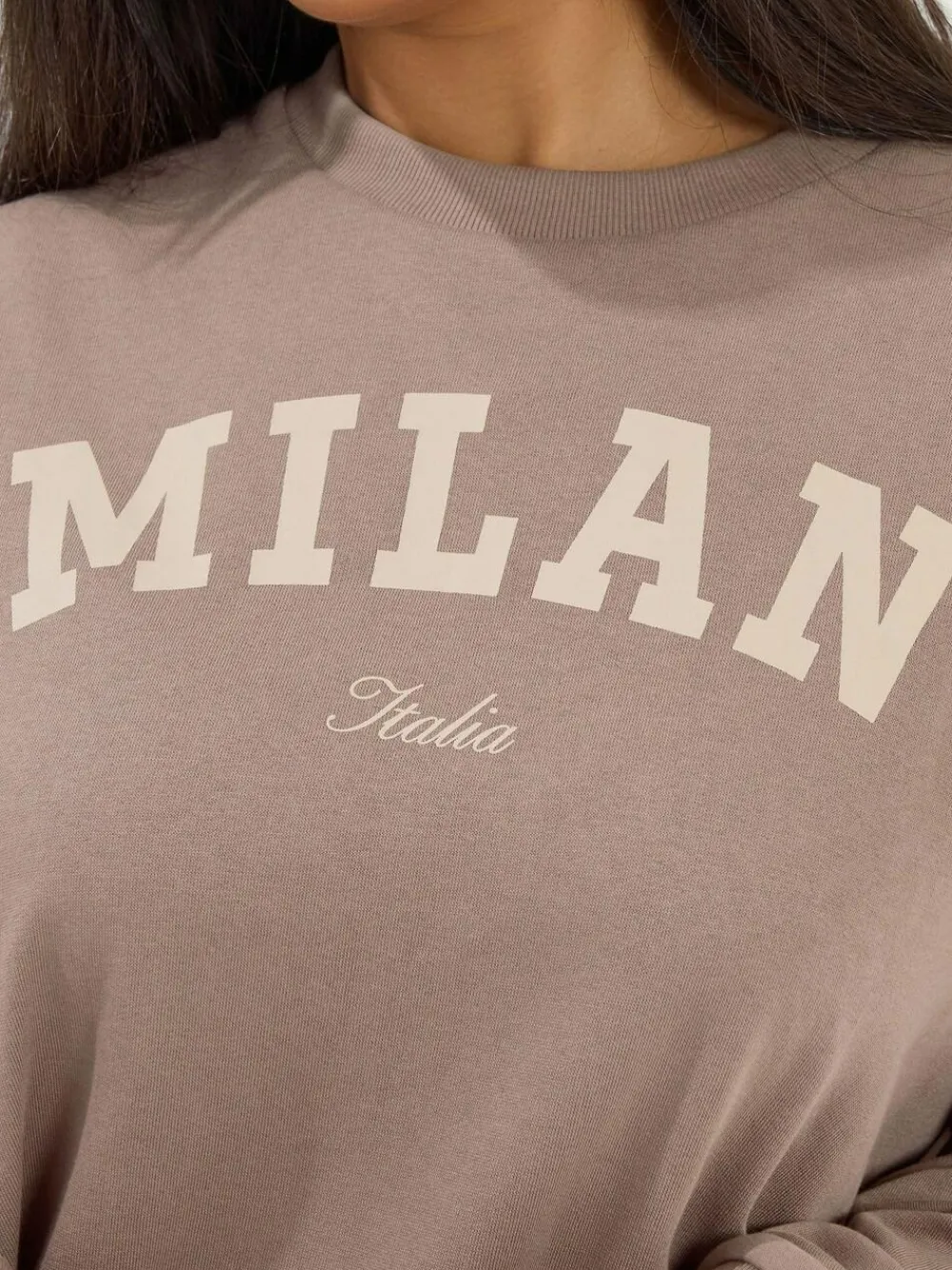 Fit & Fashion Notes: Make a statement this season with this must-have sweatshirt. Made from a comfortable jersey fabric, it features a ‘Milan’ slogan with long sleeves and a crew neckline. Team with wide leg jeans and trainers for a casual weekend look that you’ll keep reaching for. Why We Love It: Perfect for everyday wear. Machine washable. 60% Cotton, 40% Polyester.