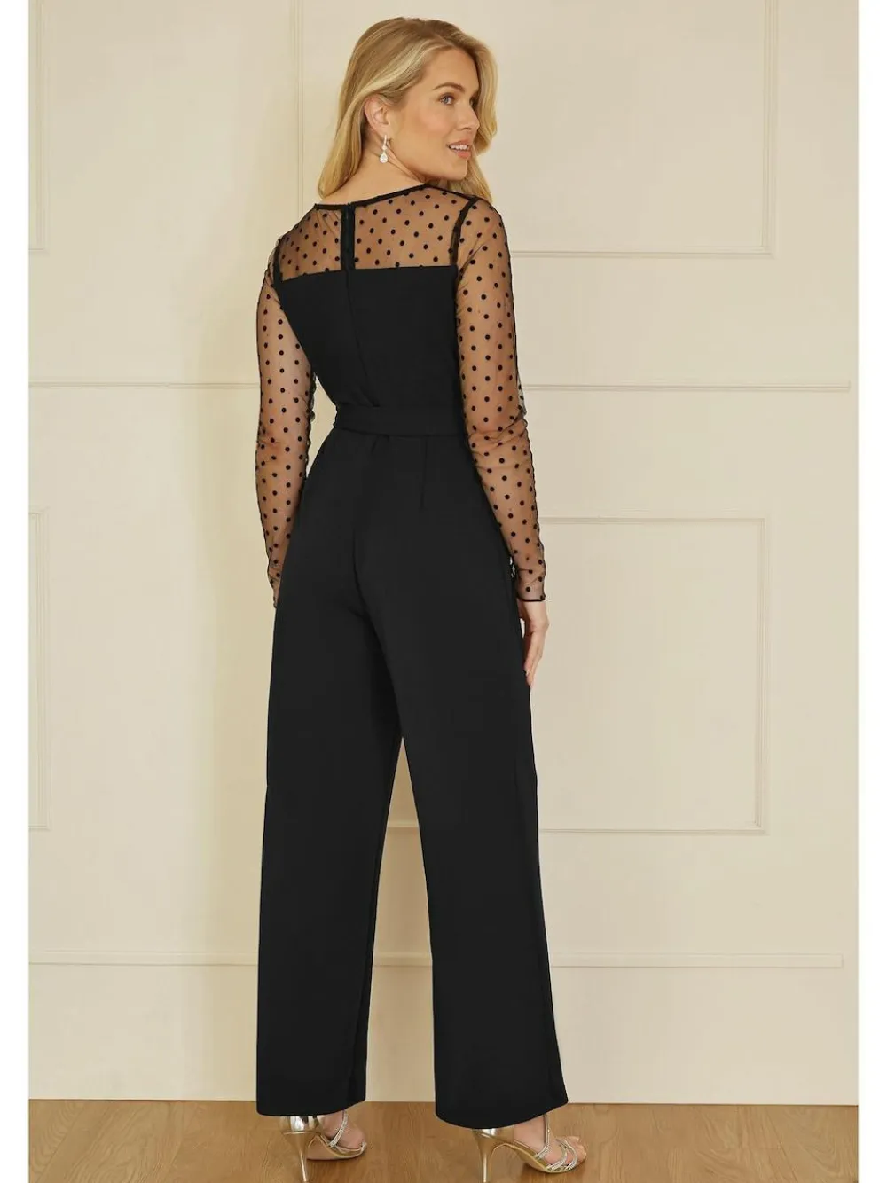 Time to RSVP in style to any invite this season – With cute spot mesh long sleeves, and a side leg style trouser that is mega flattering, you’ll feel like a million dollars at any occasion. With a belt at the waist to create a lovely silhouette. Party season perfection Spot mesh long-sleeves Wide-leg style trousers Regular inside leg length 56.5″ / 143.5cm. Machine washable. 100% Polyester.