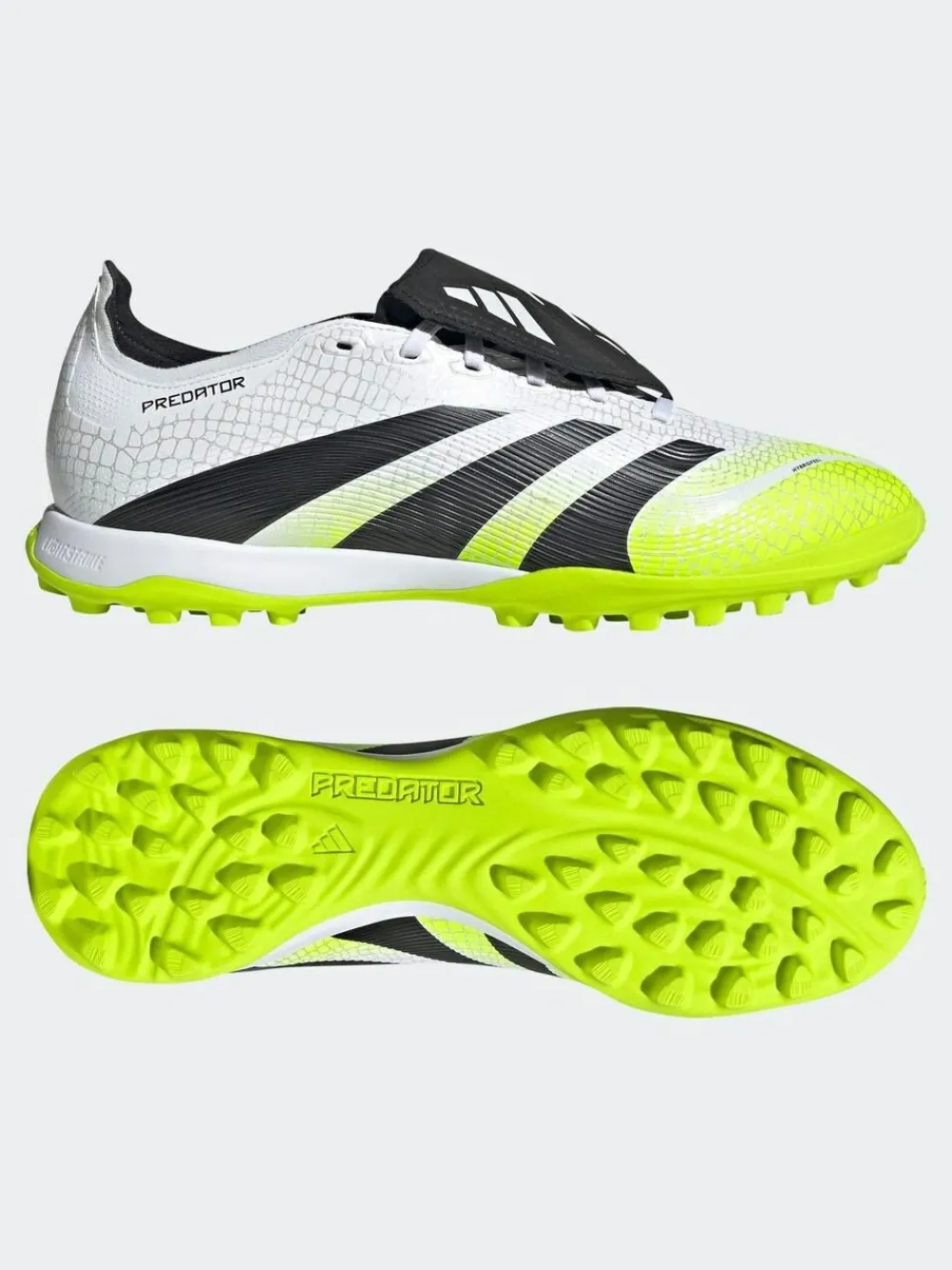 adidas White/Lemon Adult Predator League Fold-Over Tongue Turf Boots^ Soccer Cleats