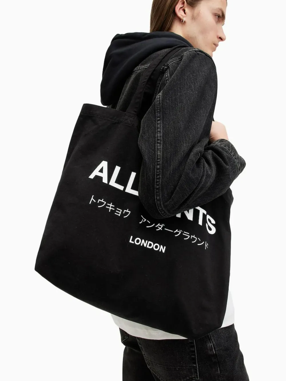 Keep everything you need close by in the Underground Tote Bag. Crafted from cotton and shaped to a spacious silhouette – it can hold a lot. Our AllSaints graphic takes centre stage on the front. Carry handles AllSaints Underground graphic Large spacious body 50% Organic cotton, 50% Cotton.