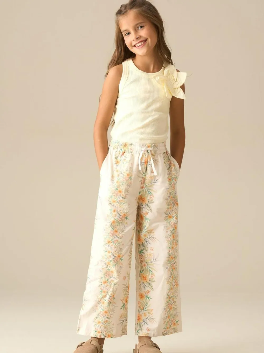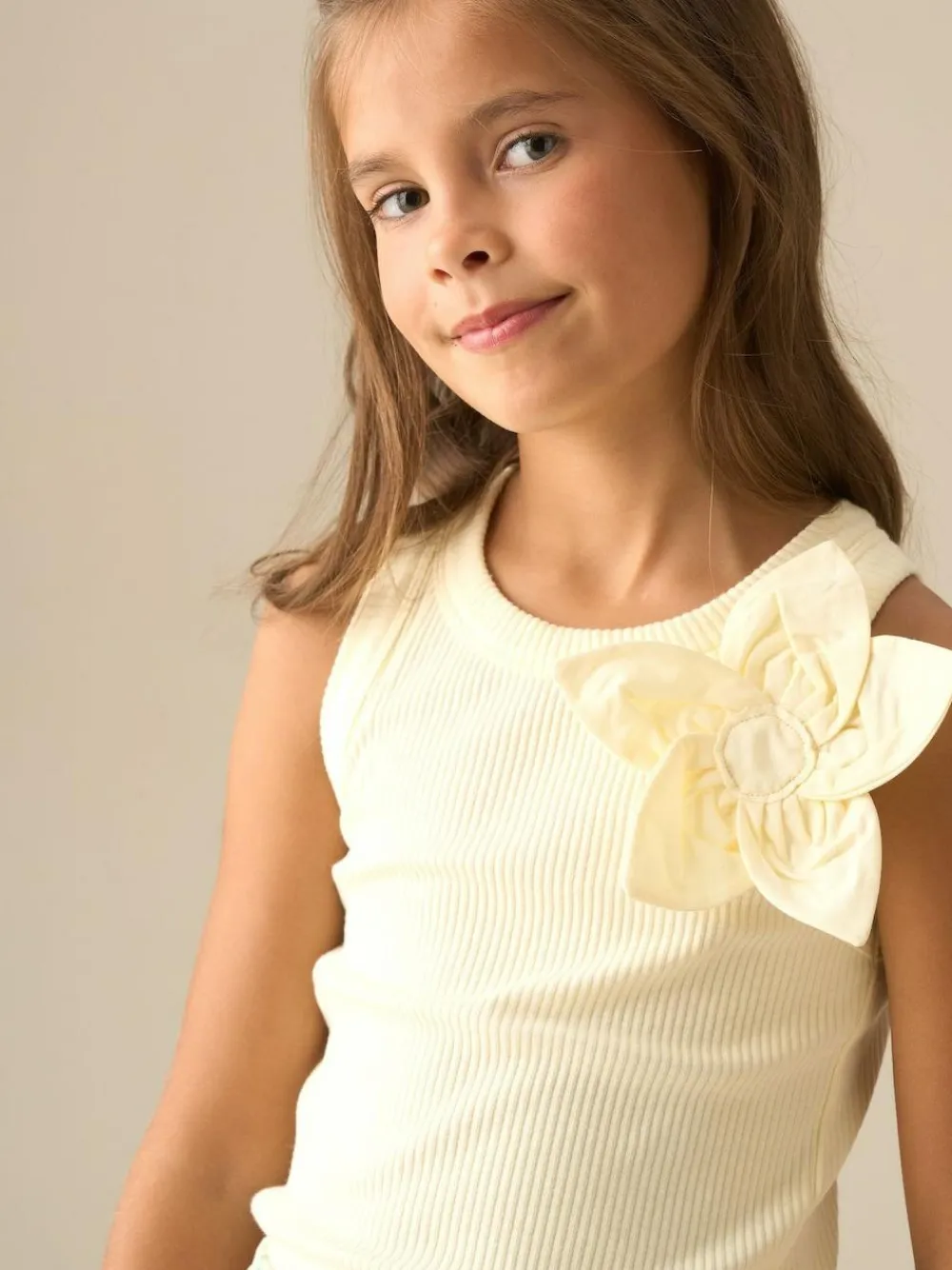 This cute Yellow vest is a summer wardrobe must-have, featuring a cotton corsage that adds a touch of charm. Made for easy styling, it pairs perfectly with a printed skirt or layers effortlessly under any outfit! Machine washable. Main 96% Cotton, 4% Elastane. Trim 100% Cotton.