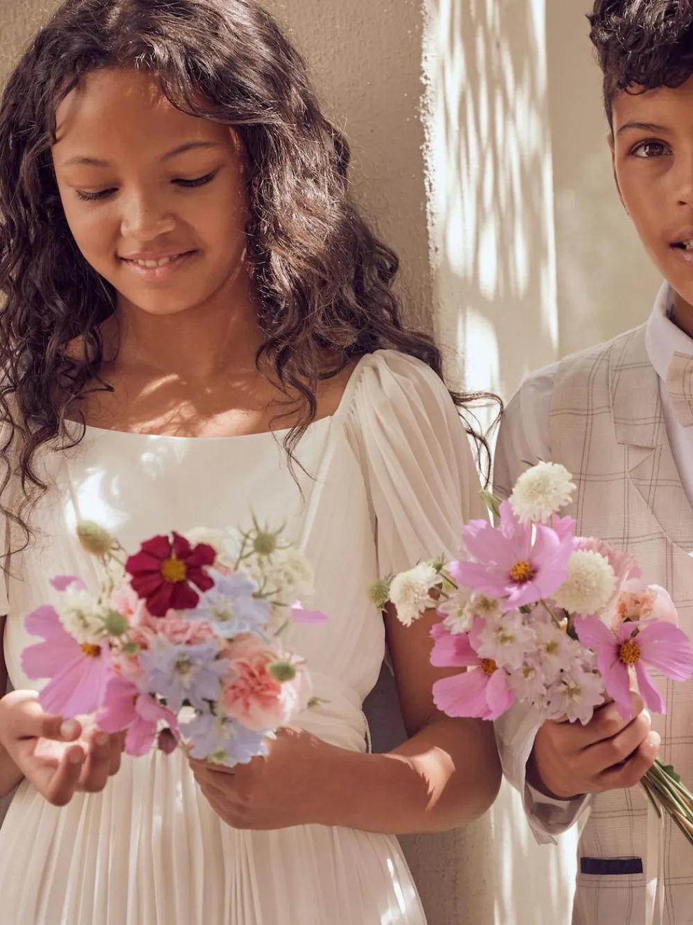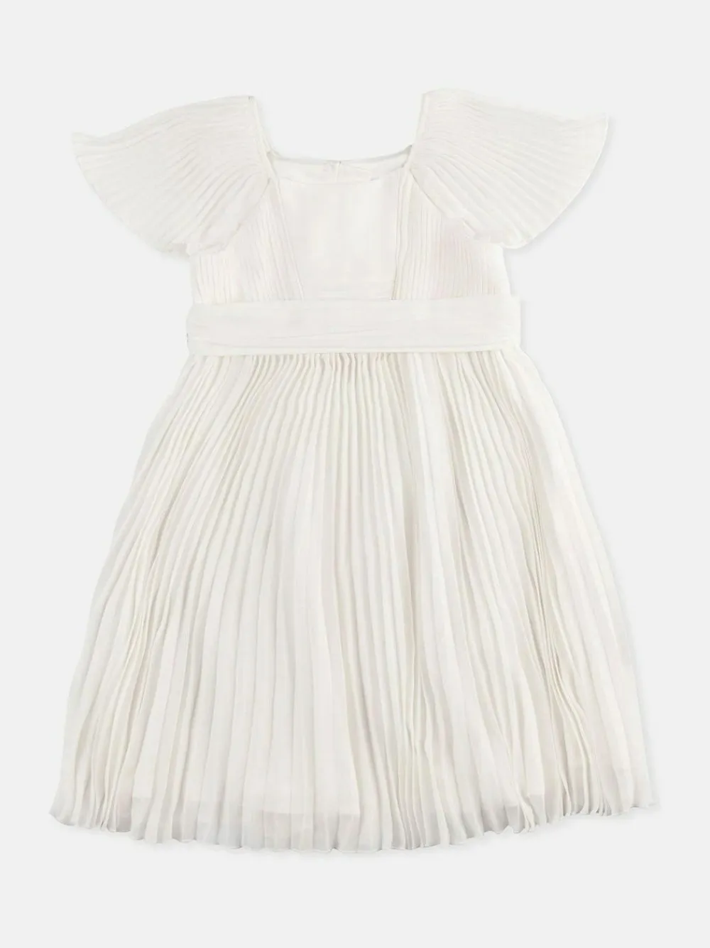 Made for the most special of occasions, this pleated ballerina occasion dress from Angel & Rocket is a classically elegant style. With pleated bodice detailing, fluted angel sleeves and a fabulously floaty skirt that finishes just below the knee. This exquisite style is finished with a sash to the waist which ties in a beautiful bow at the back and delicate button fastenings. Machine washable. 100% Polyester.