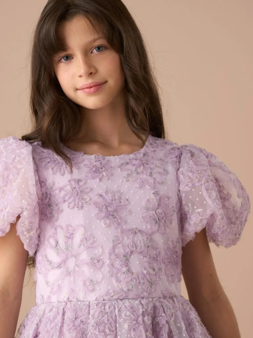 Angel & Rocket Purple Ines Purple Embellished Puff Sleeve Dress^ Occasionwear
