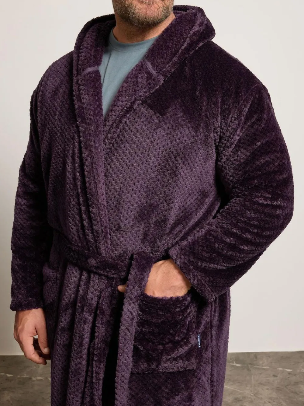 Wrap up in this brand new BadRhino dressing gown. Super soft in a textured fleece fabric, it features an adjustable tie waist, a hood and two front pockets. Layer over your loungewear to finish off the look. Machine washable. 100% Polyester. Warning: Keep away from fire and flames.