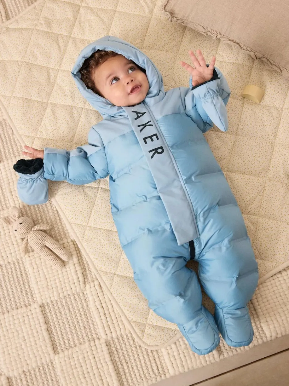 Let your little one explore in style with the Baker by Ted Baker Blue Shower Resistant Snowsuit. This snug snowsuit is perfect for cold-weather adventures, keeping them warm and dry. It features an eye-catching blue design with bold BAKER branding printed down the placket, a branded badge on the sleeve, and a stylish branded zip puller. The snowsuit comes with convenient, removable gloves to keep tiny hands toasty. Designed for practicality as well as style, this snowsuit is shower resistant to protect against light rain and snow. Please note that older sizes do not have built-in feet, allowing for more room to grow and for wearing with boots. Branded detailing Zip fastening Removable gloves Main 100% Polyester. Lining 100% Polyester. Wadding 100% Recycled polyester. Shower resistant, water repellent finish to provide protection against light rain., Made from durable fabric., Extra warm protection against cold temperatures.