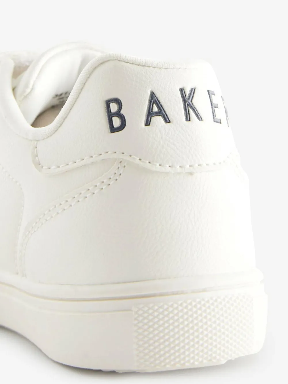 Made for on-the-go feet, these Baker by Ted Baker trainers are sure to level up his everyday look. The classic white silhouette has been designed with touch and close strap fastenings for a secure fit with the iconic Baker branding on the side, heel and tongue for a luxe finish. A cushioned sole will ensure his comfort throughout the day. Team them with his favourite jeans and jumper outfit. Branded tape detail Cushioned soles Touch and close straps Available in younger boys Upper – Other Materials, Lining and Sock – Textile, Sole – Other Materials.