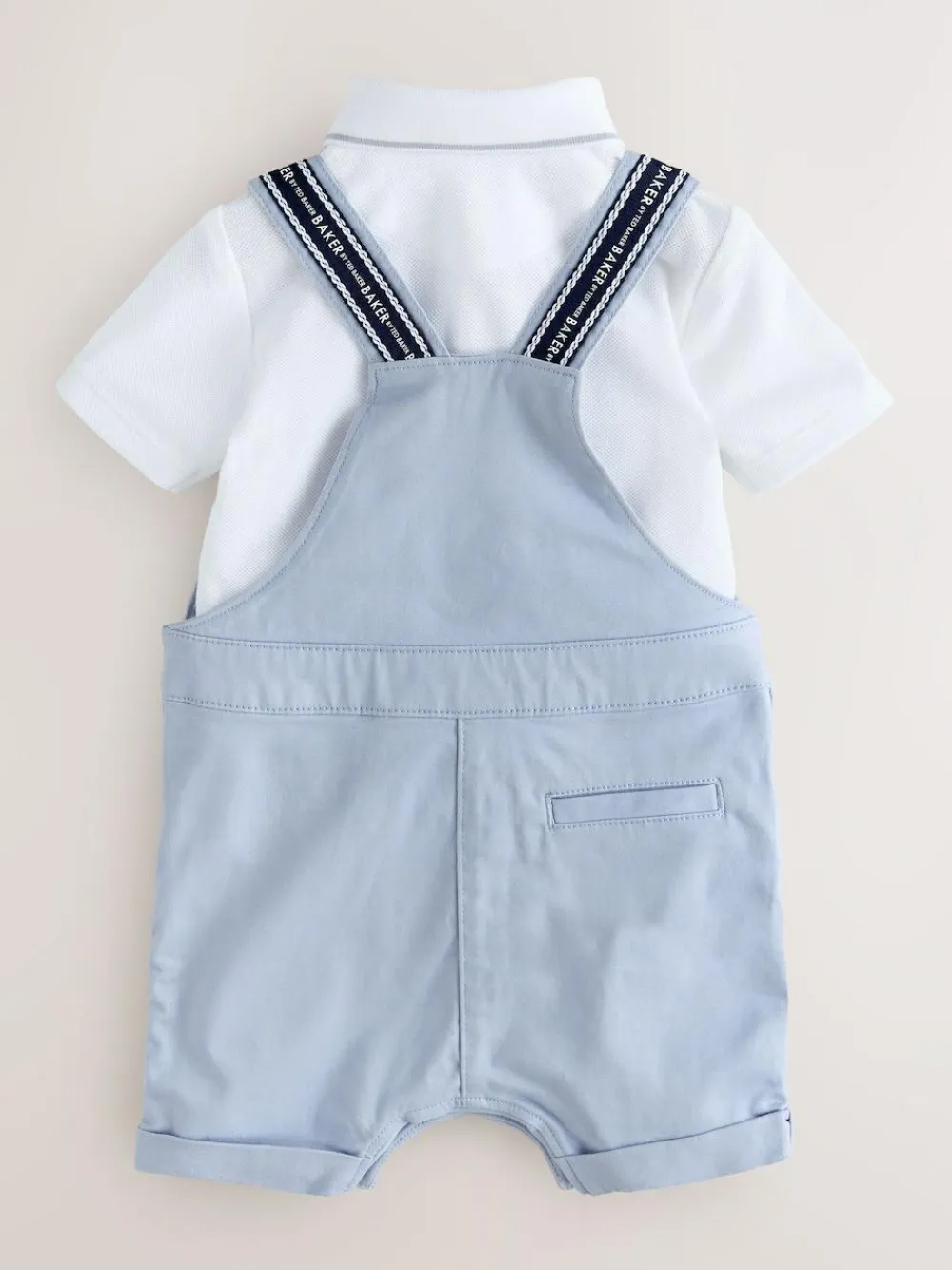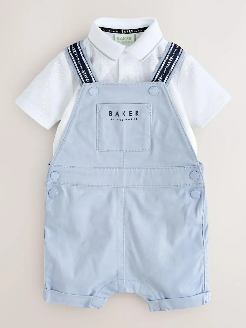 Achieve a timeless, high-quality look for your little one with the Baker by Ted Baker Dungarees and Polo Shirt Set, a perfectly coordinated two-piece ensemble. The set features cute chino dungarees designed with practical branded poppers and a functional front pocket. For a signature designer touch, the pocket is finished with printed high-build branding, while the straps boast branded woven detailing. This charming outfit is paired with a white polo shirt featuring a crisp collar and short sleeves, creating a smart and comfortable look suitable for any special occasion. 2 piece set Front pocket Branded poppers Printed high build branding T-shirt 100% Cotton. Dungaree 98% Cotton, 2% Elastane.