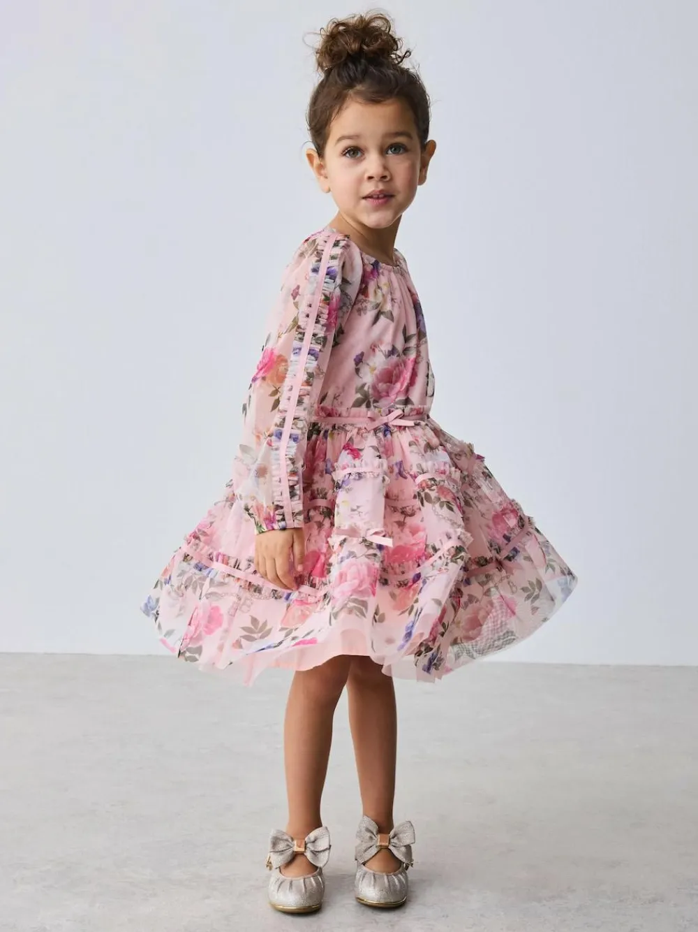 Baker by Ted Baker Floral Mesh Long Sleeve Bow Dress^ Dresses