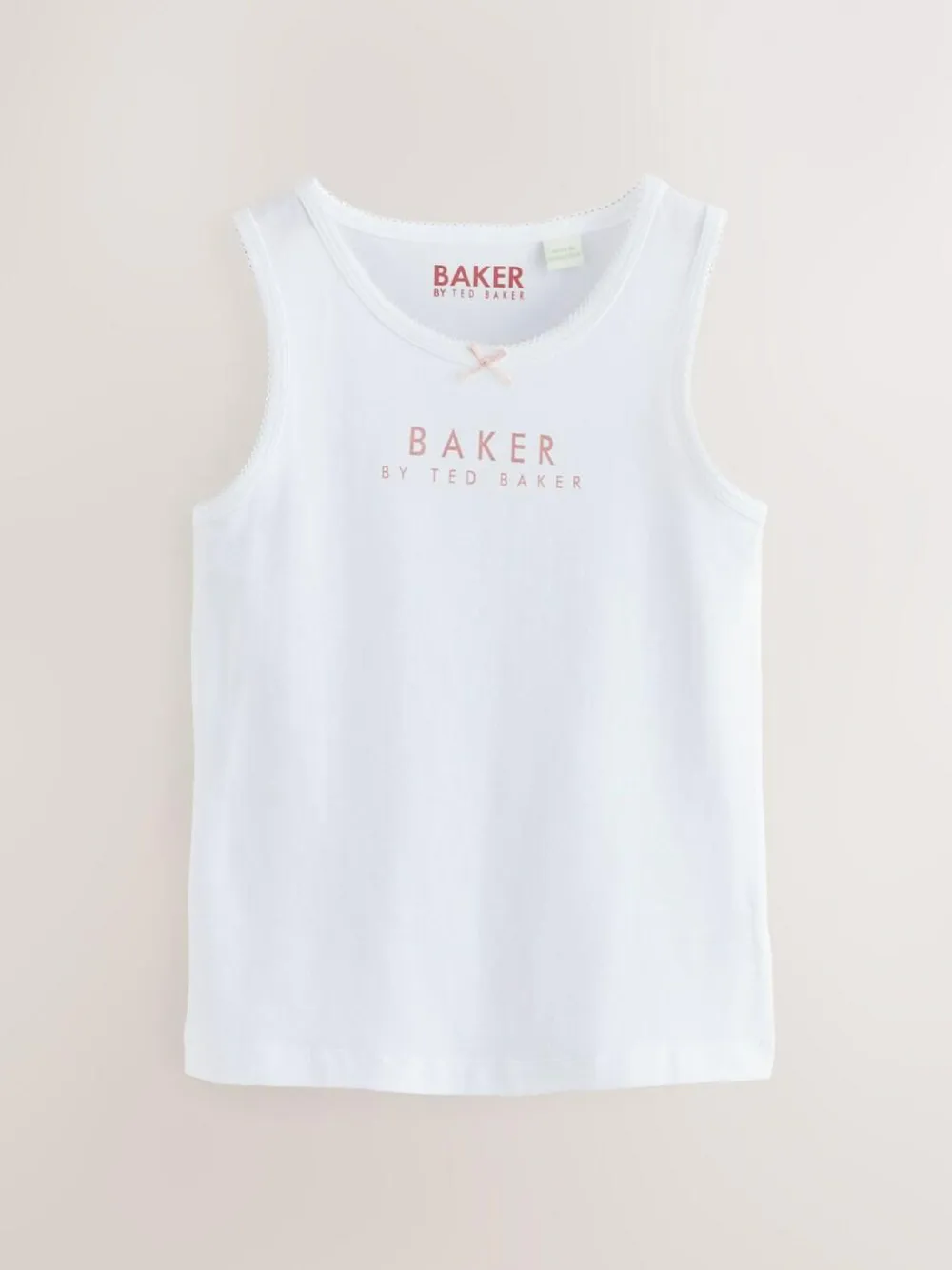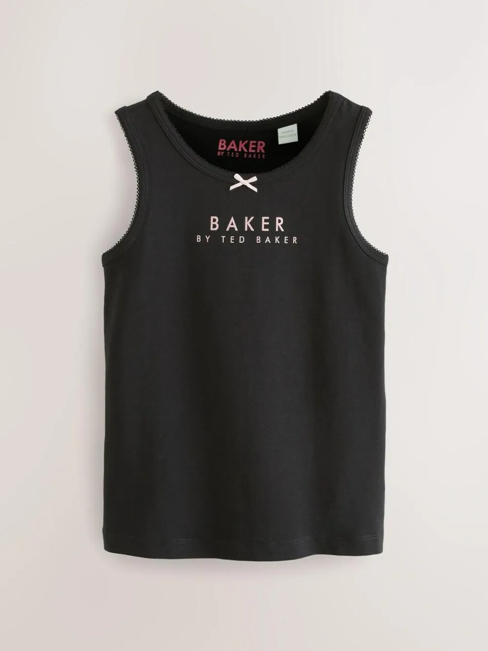 Take care of her wardrobe staples with this stylish vests pack from Baker by Ted Baker. The multipack includes three vests each made from soft and breathable cotton in different colourways and pretty prints. They are all designed with a round neck, pretty picot trim detail, plus the iconic Baker branding. 3 pack Picot trim detail Foil Baker branding 3 x Vest 95% Cotton, 5% Elastane.